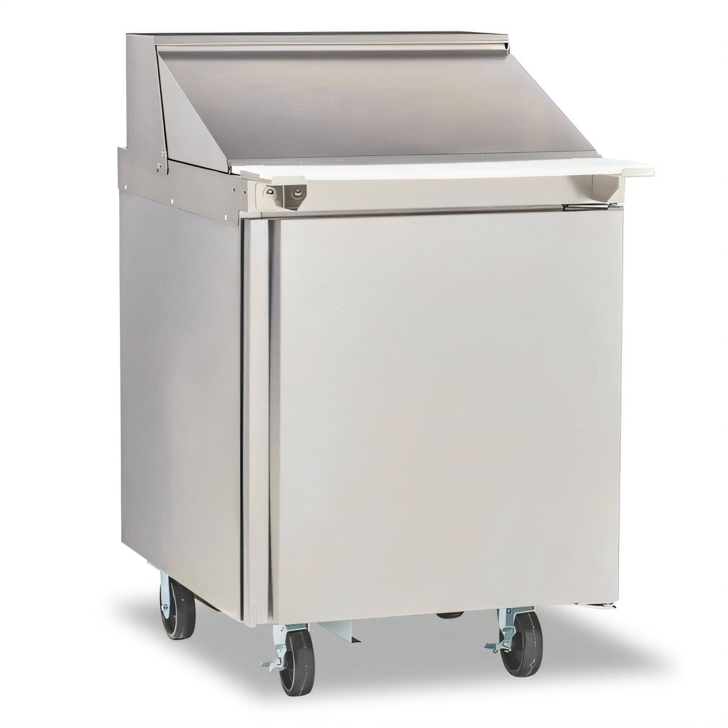 12-pan, single-door, front-breathing sandwich & salad stationGive your cooks the speed and food-safety edge they need. Delfield’s 27" Mega Top keeps twelve 1/6-size pans ice-cold and within arm’s reach, while a rugged stainless cabinet, eco-friendly refrigeration and lockable casters make it a long-term workhorse for any busy line.