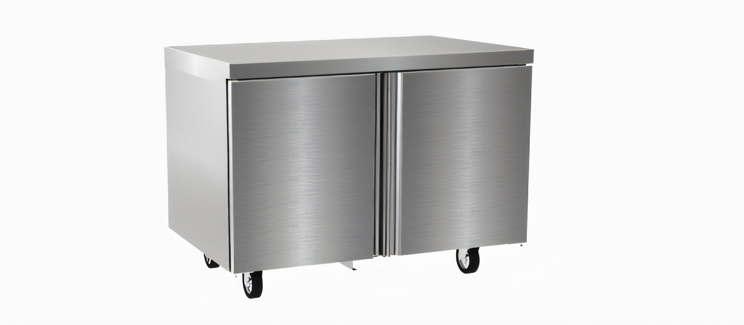 - Two door, 48 in. work-top freezer base provides 14.02 cu ft of frozen storage.