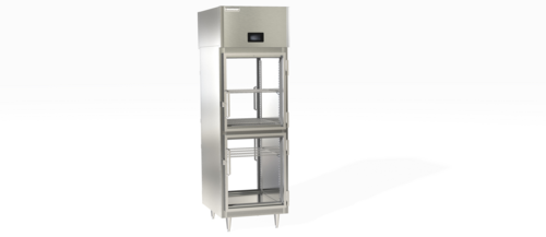 DSL Refrigerator, Pass-Thru, one-section, 22.9 cubic feet capacity, top-mounted self-contained refrigeration system, (4) half-height hinged glass doors (locking), (3) adjustable wire shelves, 4.3" easyTouch® screen temperature display/control with remote monitoring, LED interior lighting, pilaster with shelf clips, stainless steel exterior front, sides & interior, (4) 6" adjustable stainless steel legs, R290 Hydrocarbon refrigerant, 1/3 HP, 115v/60/1-ph, 6.5 amps, NEMA 5-15P, UL, UL Sanitation
