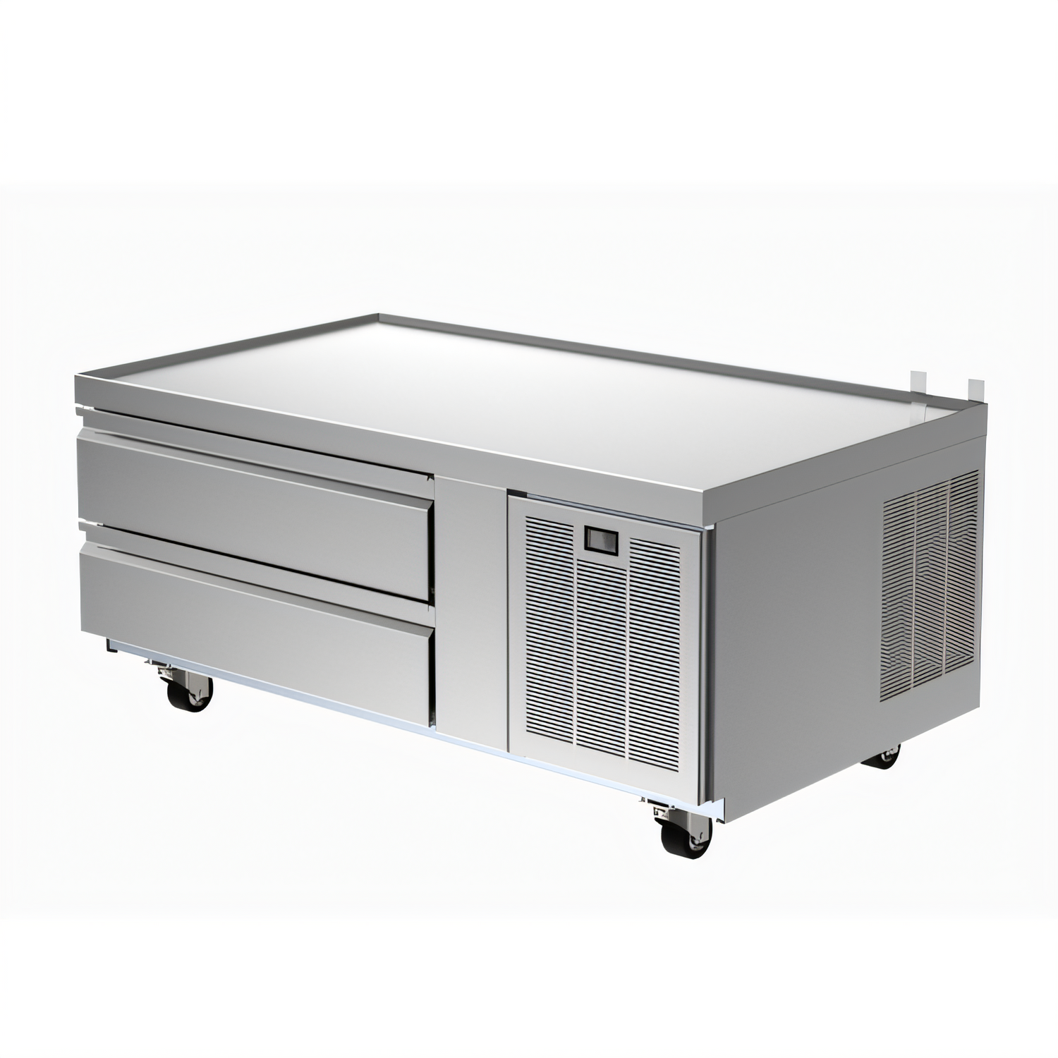 - Side-mounted, self-contained refrigeration with 1/5 hp compressor keeps cabinet 36 – 40 °F (2 – 4 °C) even in 100 °F kitchens.