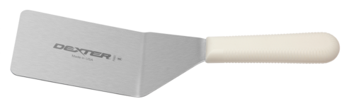 Dexter Russell Basics 4"x2.5" stainless pancake turner with offset blade, durable polypropylene handle, NSF certified for pro kitchens.