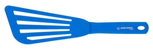 Dexter Russell SofGrip 11" silicone fish turner, wide blue head for gentle flipping, non-slip grip, durable residential kitchen tool.