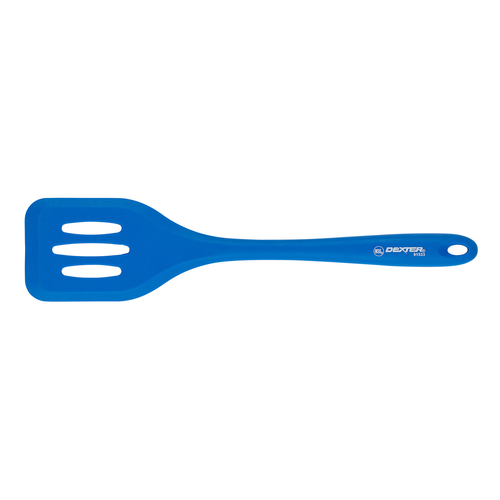 Durable Dexter Russell 11.5" slotted silicone turner, heat-resistant to 500°F, NSF-certified and dishwasher safe for easy cleanup.