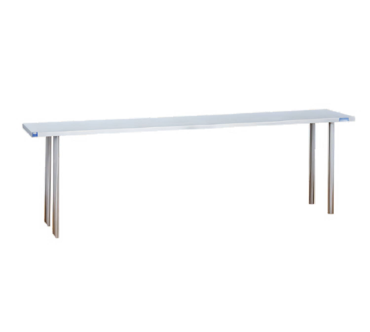 Overshelf, table mount, 120"W x 10"D x 18"H, single-deck, 16 gauge stainless steel, 1" dia. stainless steel tubular supports, for work tables, NSF (placement across back of table, unless otherwise specified)