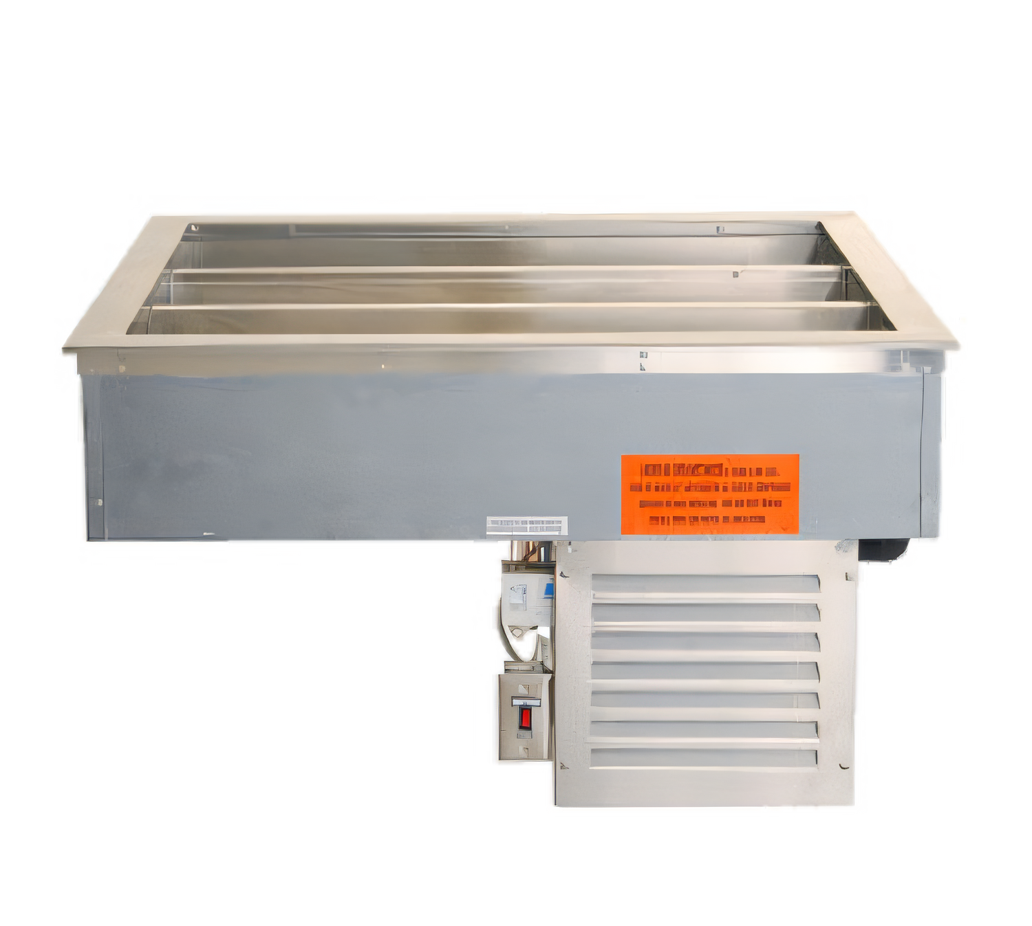 Cold Food Drop-In Unit, Tri-Channel NSF 7 stainless steel mechanical cold pan, (1) section, 8" deep, holds 1/3rd 1/6th 1/9th pans without adding adapters, stainless steel top rim & interior liner, steel exterior, remote on/off switch, 10' cord & NEMA 5-15P, 120V/60/1-ph, 3.2 amps, UL, CUL, UL EPH Classified