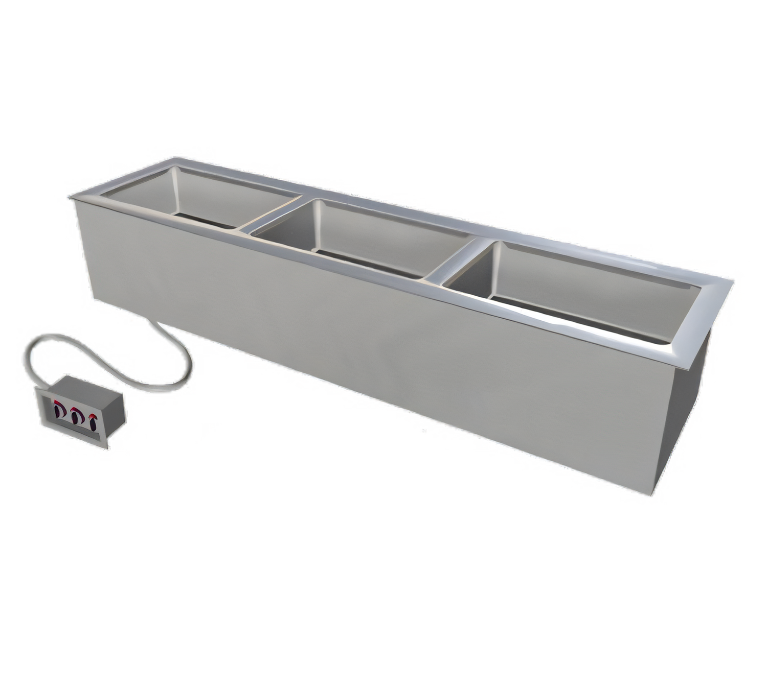 Slimline Hot Food Drop-In Unit, electric, with (3) 12" x 20" hot food well, 68-1/4" long, 12-3/4" high, stainless steel top & interior liners, steel exterior housing, with remote control panel, sealed wells with drains, cULus, UL EPH Classified