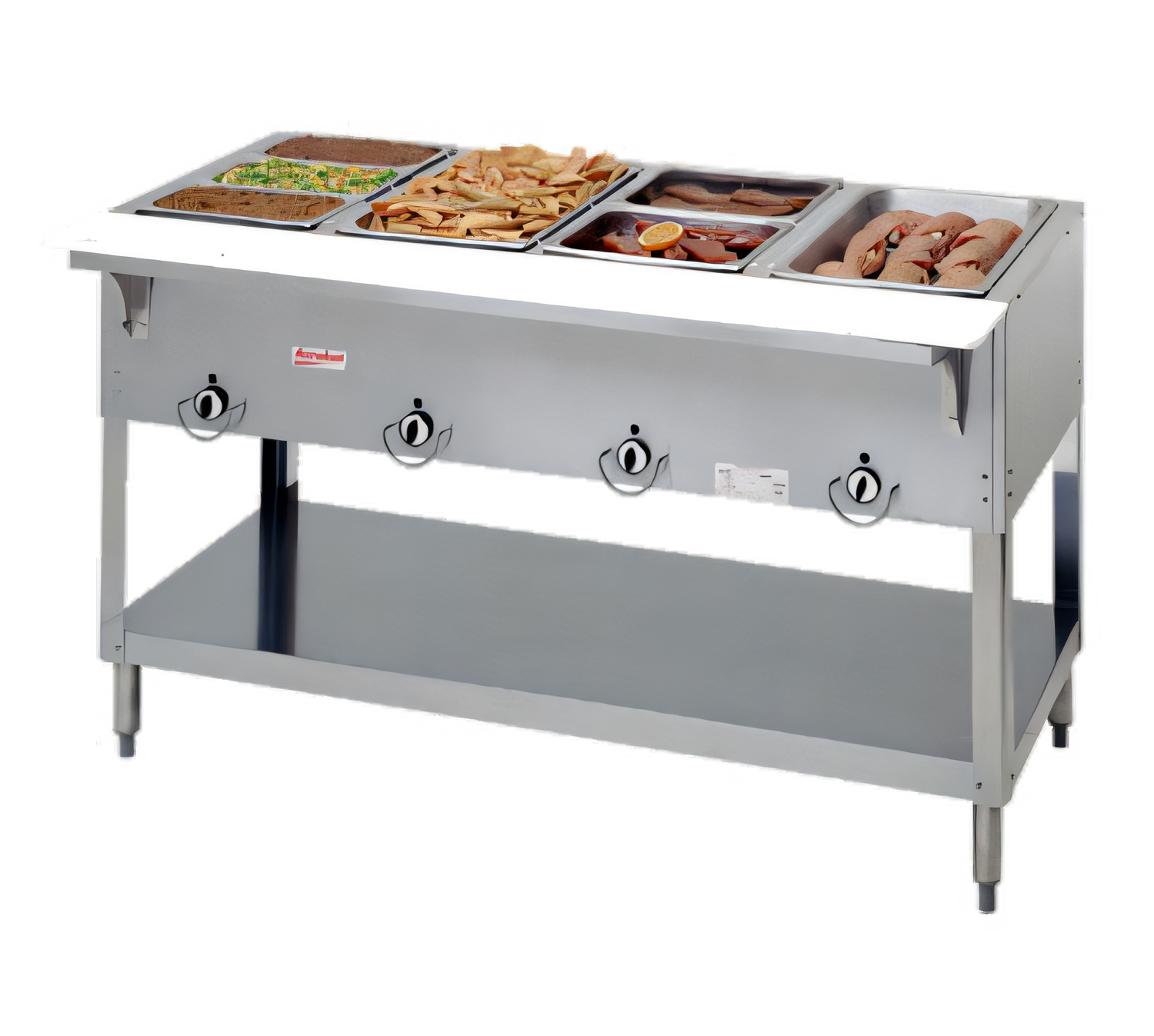 Aerohot™ Hot Food Station, electric, 58-3/8"W x 22-7/16"D x 33-3/8"H, (4) 12" x 20" sealed hot food wells with individual drains with valves, infinite controls, stainless steel top with 1/2" thick x 7" wide poly carving board, stainless steel open base with undershelf, legs & feet, 6' cord & plug, cULus, UL EPH Classified