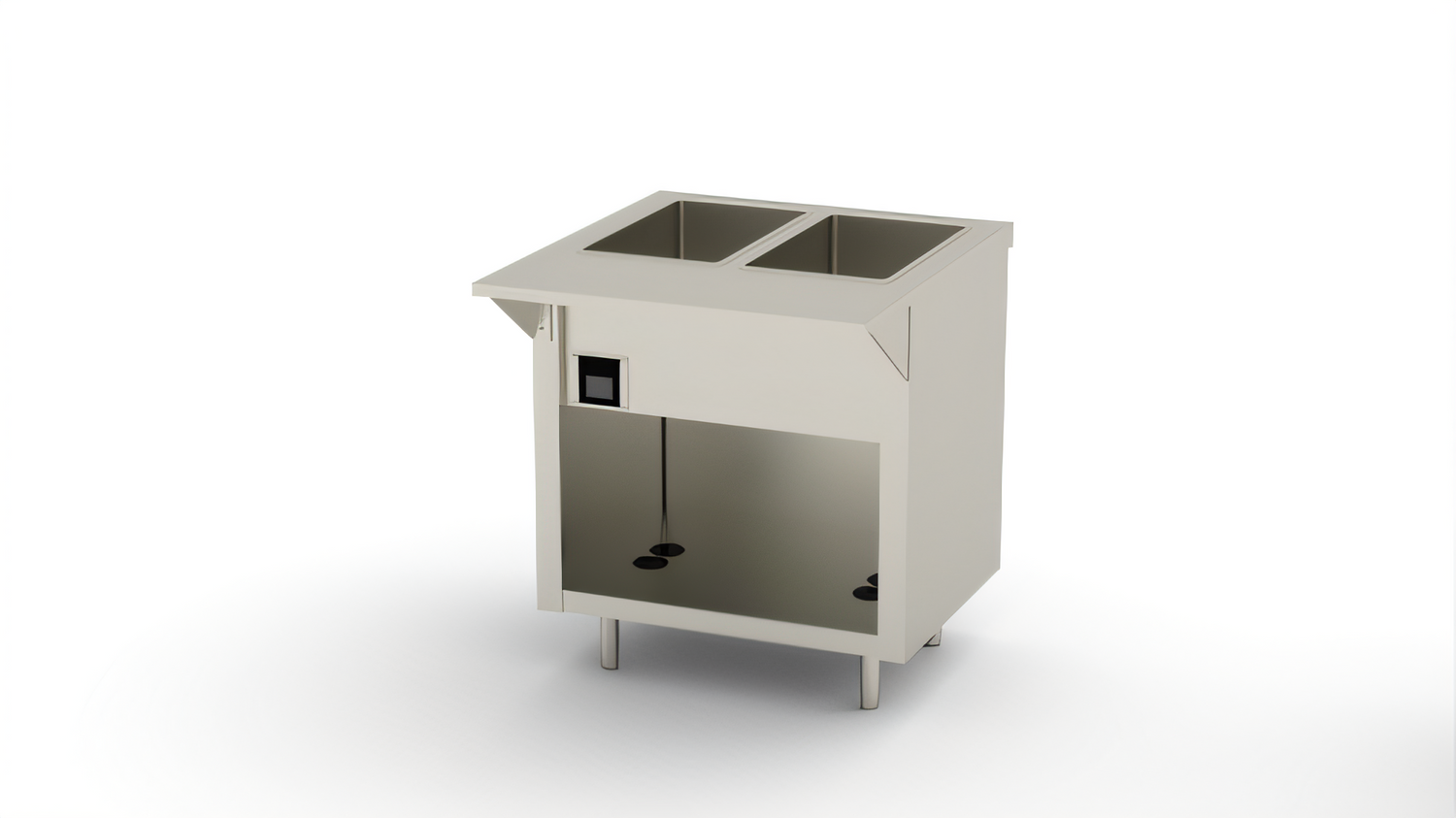 Thurmaduke™ Ganged Waterless Well Unit, electric, 32"W x 25-1/2"D x 36"H, 16ga stainless steel top, (2) stainless steel sealed wells, touch screen control, 20ga stainless steel body & undershelf, 6"H stainless steel legs with adjustable feet, cULus, UL EPH CLASSIFIED (Flyer)