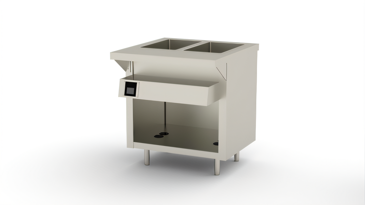 Thurmaduke™ Deluxe Ganged Waterless Well Unit, electric, 32"W x 34"D x 36"H, 16ga stainless steel top, (2) stainless steel sealed wells, touch screen controls, integral stainless steel cutting board, dish shelf, 20ga paint grip steel body & undershelf, 6"H stainless steel legs with adjustable feet, cULus, UL EPH CLASSIFIED (Flyer)