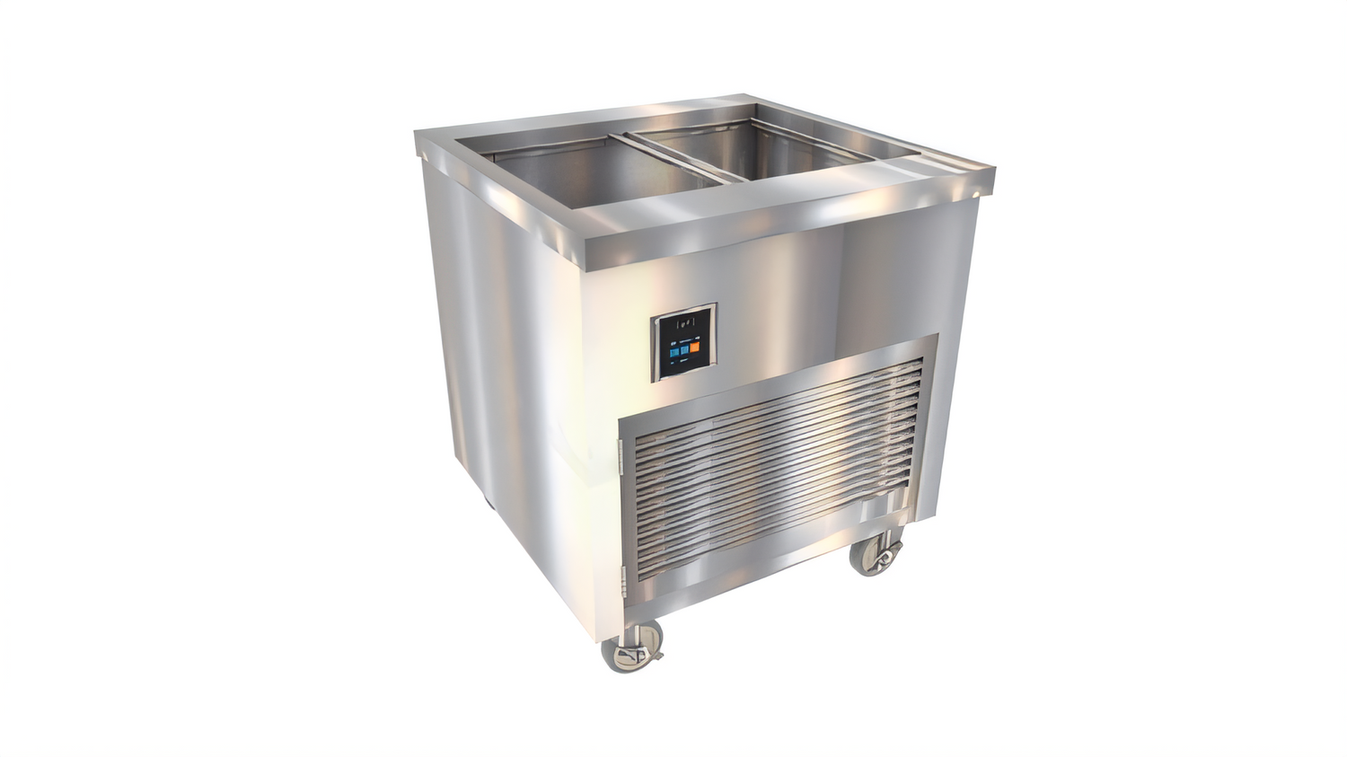 Thurmaduke™ Cold Food Unit, mobile, 32"W x 32"D x 36"H, 16ga stainless steel top, NSF 7 stainless steel mechanical cold pan, 8" deep, touchscreen control (for optional mechanical control, see configuration options), 28-1/2" x 21-3/4" liner, 1" drain line & valve, hinged stainless steel louvred grill, stainless steel body & undershelf, 5" dia. swivel casters & brakes, R290 compliance (stainless steel louver and partition), 120v/60/1-ph, 5.2 amps, NEMA 5-15, cULus, UL EPH Classified