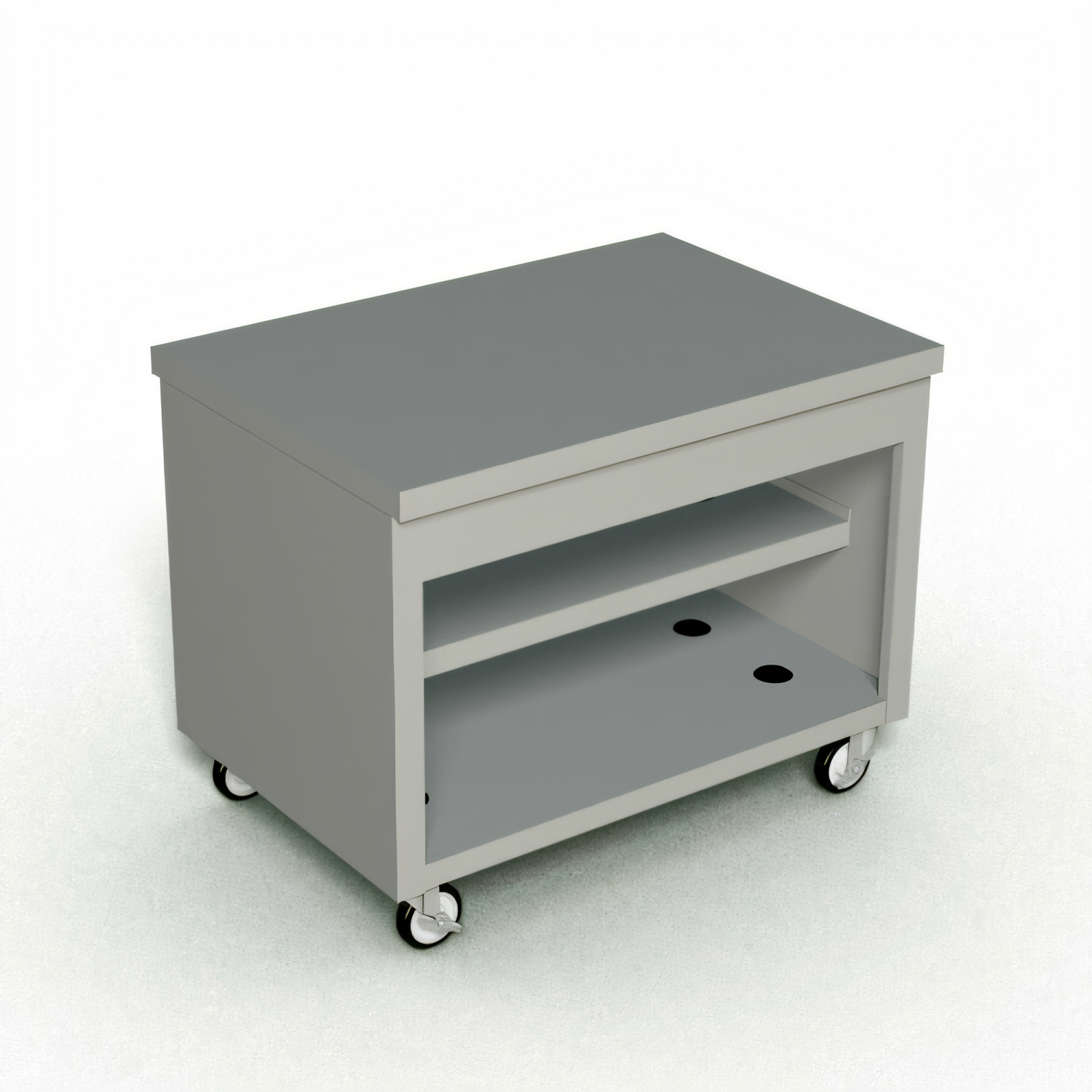 Thurmaduke™ Solid Top Unit, mobile utility counter, 46"W x 32"D x 36"H, 16ga stainless steel top, 20ga stainless steel body & undershelves, 5" dia. gray poly swivel casters & brakes, NSF