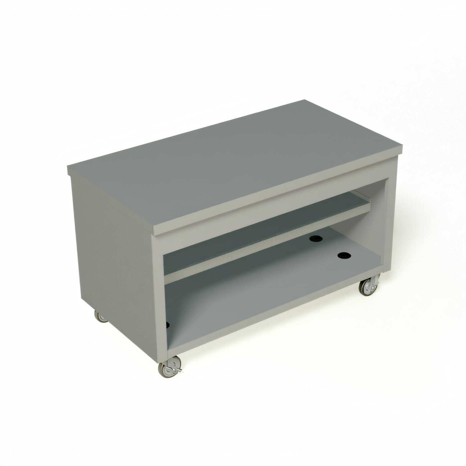 Thurmaduke™ Solid Top Unit, mobile utility counter, 60"W x 32"D x 36"H, 16ga stainless steel top, 20ga paint grip steel body & undershelves, 5" dia. gray poly swivel casters & brakes, NSF