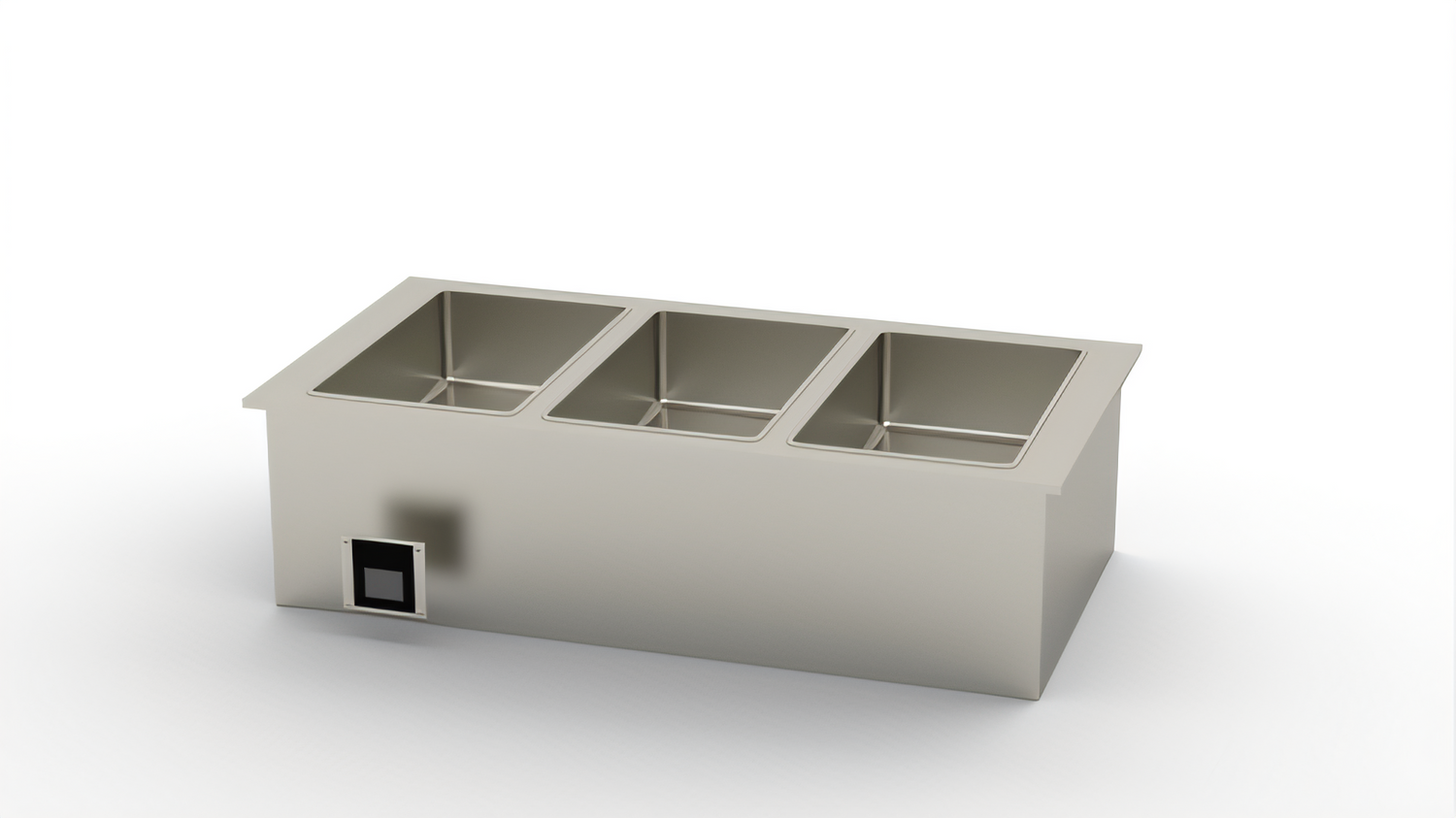 Waterless Hot Food Well Drop-In Unit, ganged, electric, dry operation, with (3) 12" x 20" hot food well, 46-1/4"W x 24-1/4"D x 12-3/4"H, stainless steel well, removable FDA approved silicone rubber liner, fully insulated galvanized exterior housing, touch screen control panel, without drain, 6' cord & plug, UL, cULus