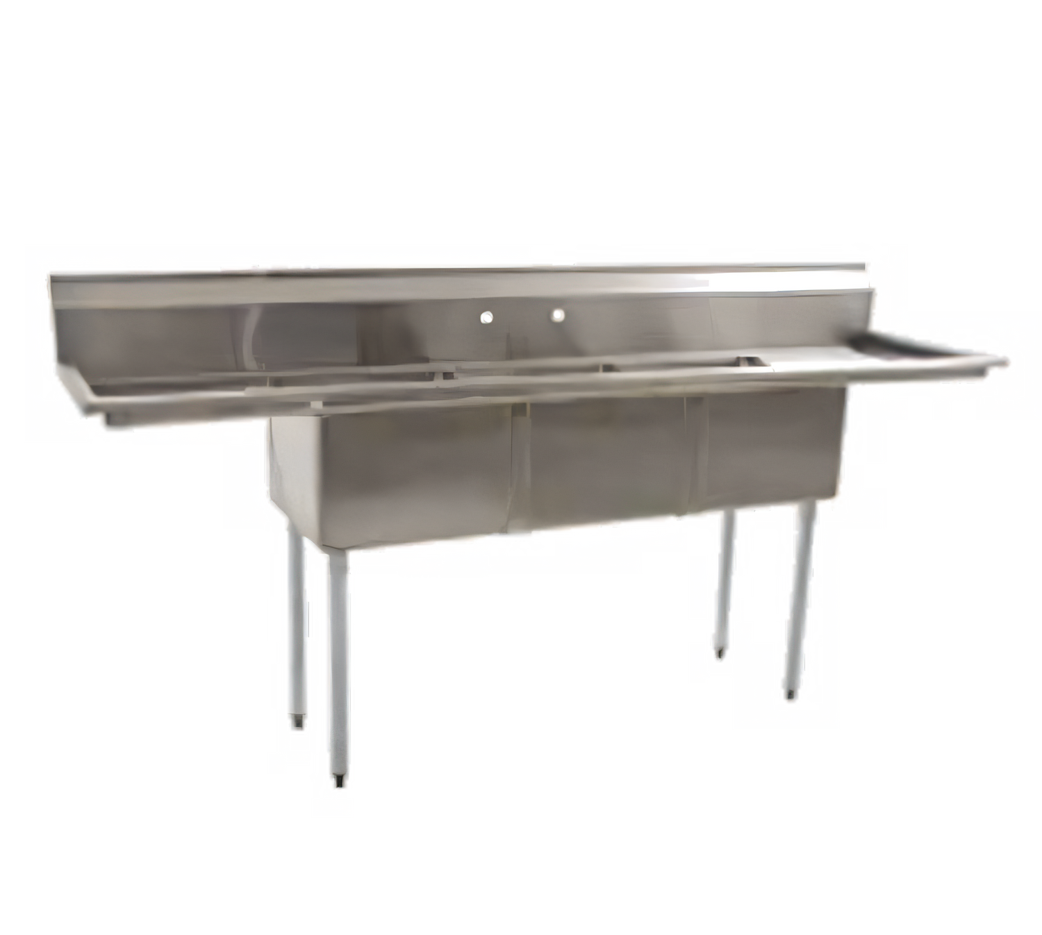 (IMPORTED) BlendPort® BPFE Series Economy Sink, 24" x 24" three compartments, 16/304 stainless steel construction, (1) 24" drainboard on left, 21"H galvanized legs, gussets, plastic bullet feet, 12" deep sink bowl with bowl straps between bowls, 3 1/2" basket drain, & faucet holes on 8" centers (2 sets), leak tested & crated with hardwood for shipping, NSF (Flyer NET Pricing)