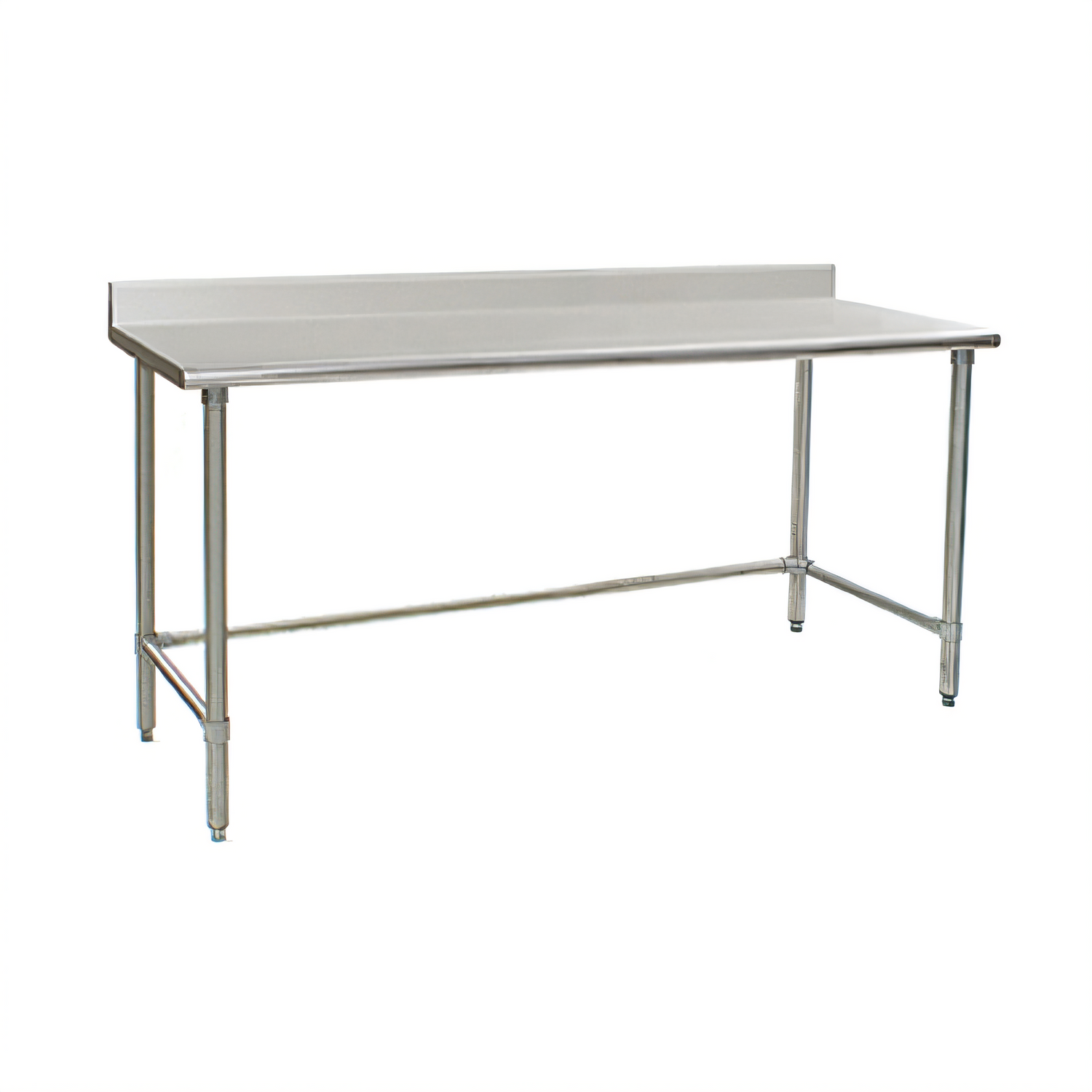 BlendPort® Budget Series Work Table, 48"W x 30"D, 430 stainless steel top, 4-1/2" backsplash, rolled front edge, with square turned down ends, reinforced top, (4) 1-5/8" dia. stainless steel legs, Uni-Lok® gussets, 1" adjustable stainless steel bullet feet, 1-1/4" stainless steel tubular crossbracing base, NSF (Flyer NET Pricing)