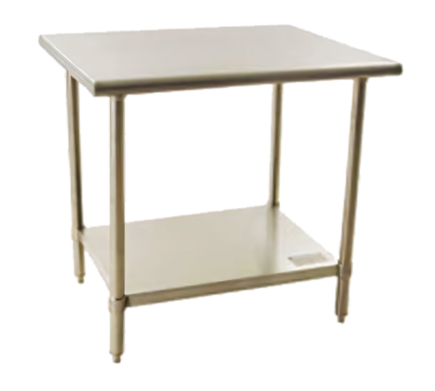 (IMPORTED) BlendPort® SL Series All-Stainless Steel Work Table with Flat Top, 96"W x 30"D, 18/430 stainless steel, hemmed rolled rim edge on front & rear, with square bend on sides, reinforced top, 1-5/8" diameter stainless steel legs, gussets, adjustable stainless steel bullet feet, 18 gauge stainless steel undershelf, NSF (Flyer NET Pricing)