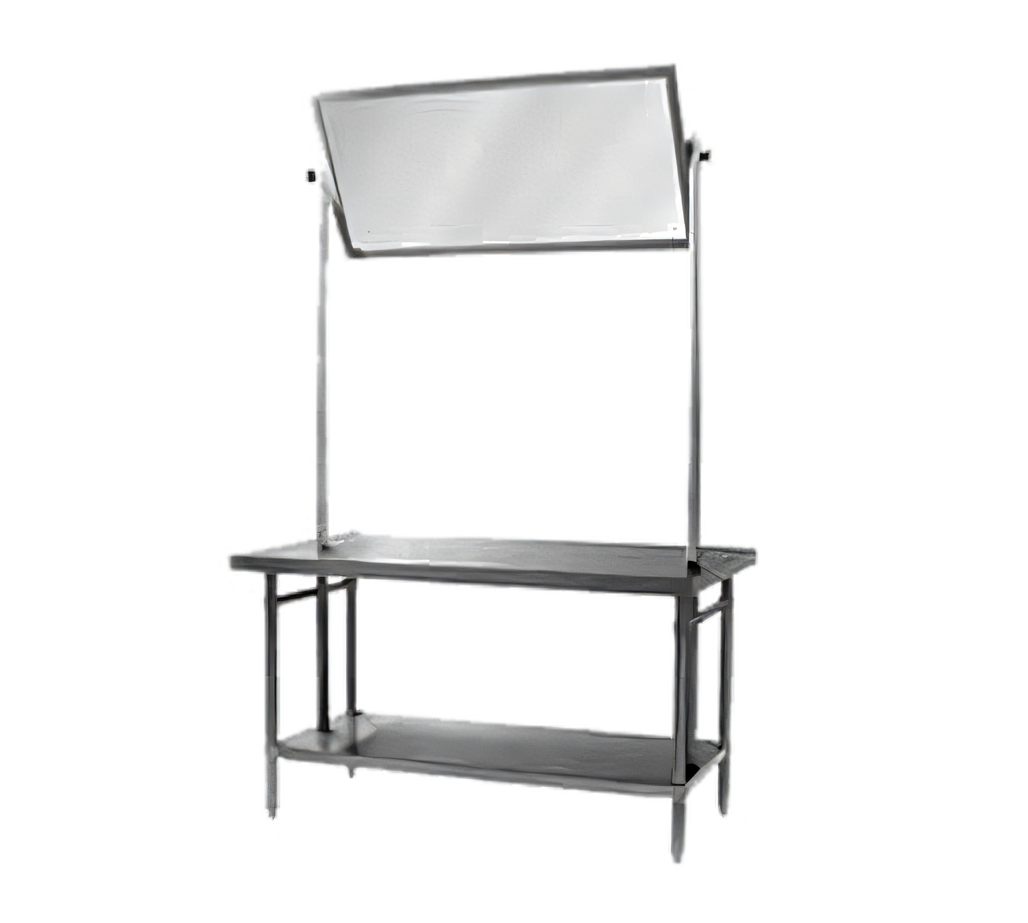 Spec-Master® Demo Table, 72"W x 36"D x 88"H, 14/304 stainless steel top, box marine edge all sides, acrylic mirror tilting frame & locking knob, stainless steel adjustable undershelf, Uni-Lok® gusset system, stainless steel legs & adjustable bullet feet, NSF (FLYER)