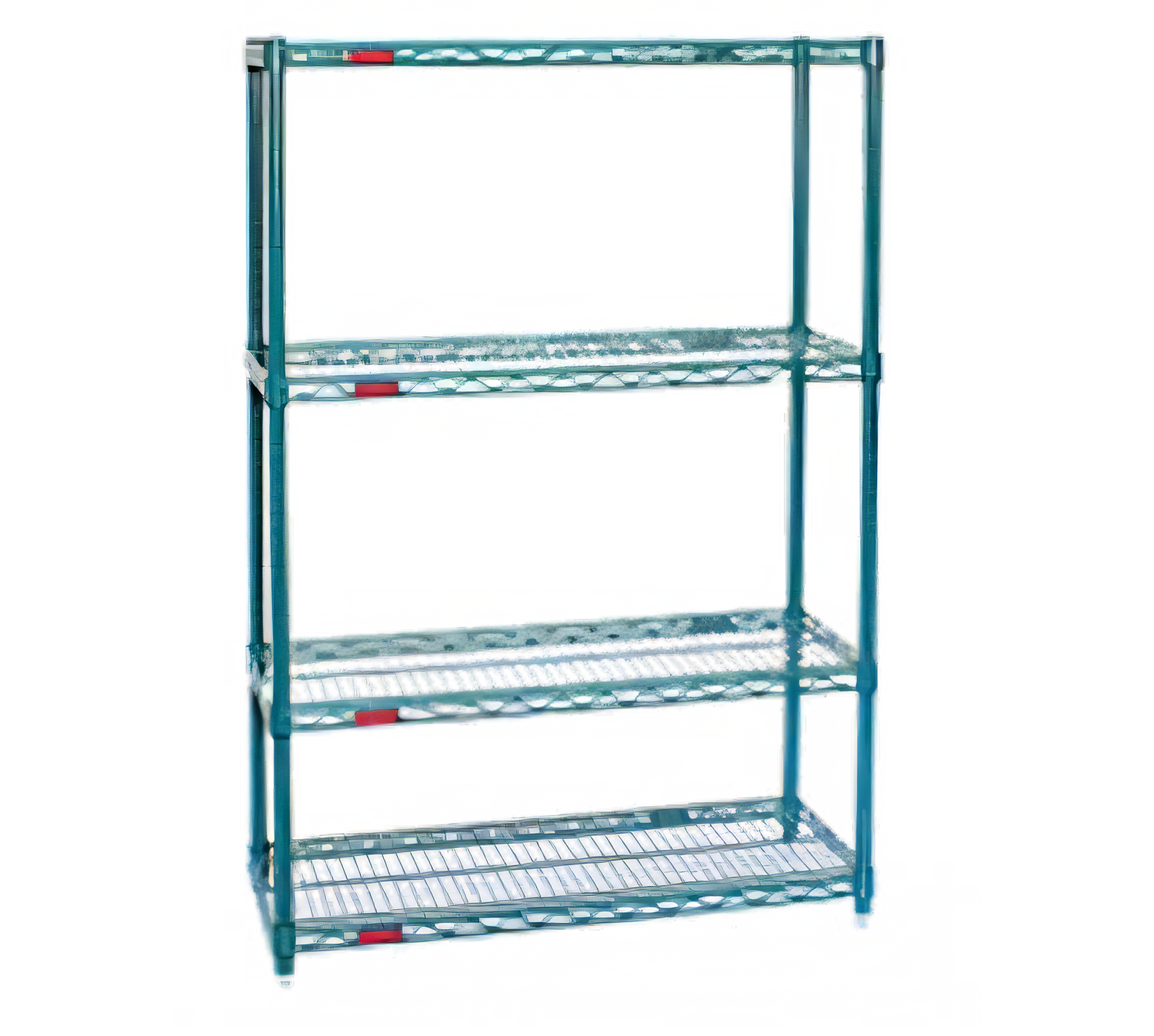 Starter Shelving Unit, 4-tier, 72"W x 18"D x 74"H, wire shelves with patented QuadTruss® design, (4) 74"H posts, Valu-Gard® green epoxy finish, KD, NSF (FLYER)