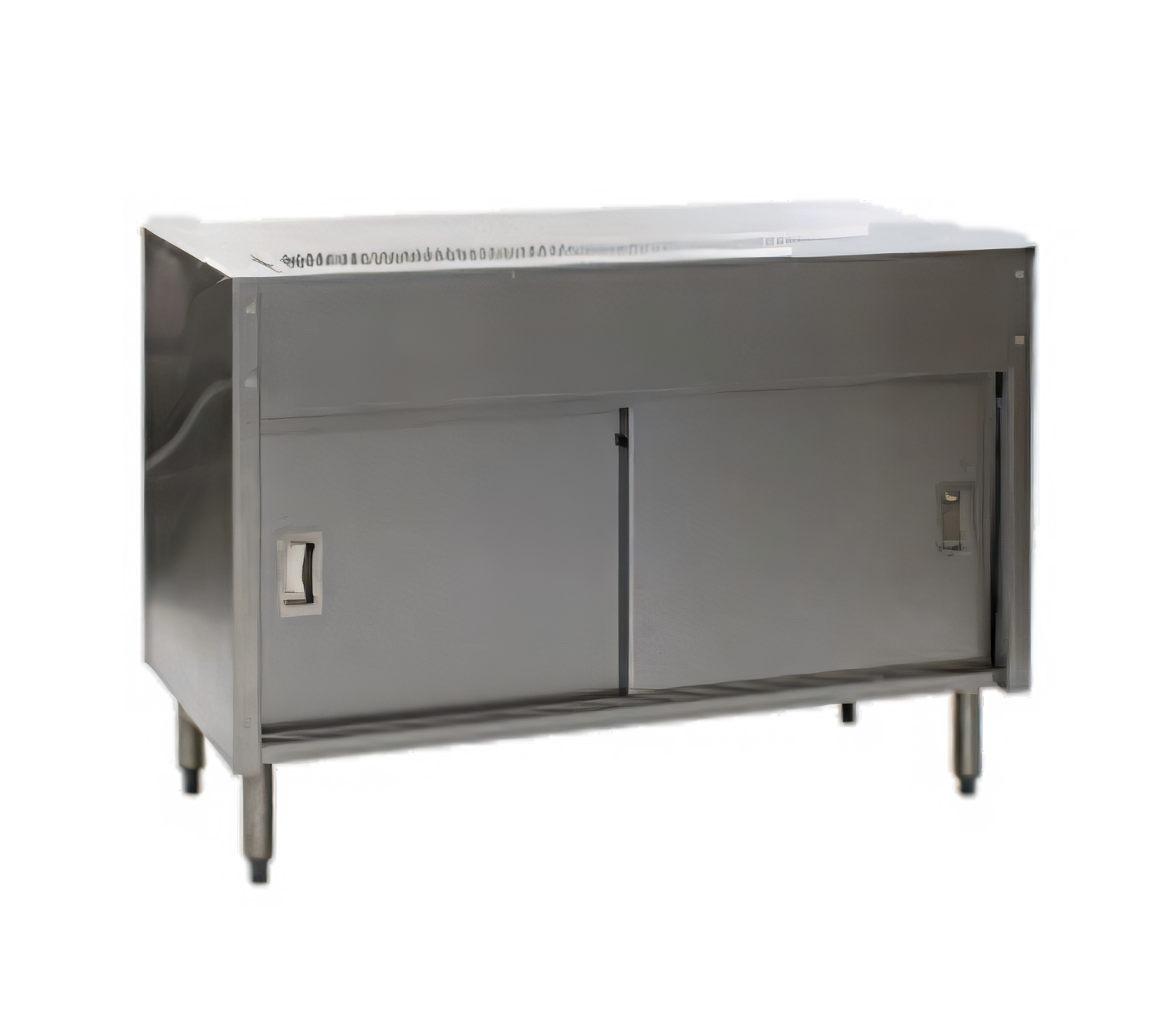 Spec-Master® Urn Stand, 63-1/2"W, 16 gauge stainless steel top, 4-3/4" trough sloped to 1" drain, full length removable louvered grate, 20/430 stainless steel enclosed base with sliding doors, 1-5/8" O.D. stainless steel tubular legs with adjustable plastic bullet feet, NSF