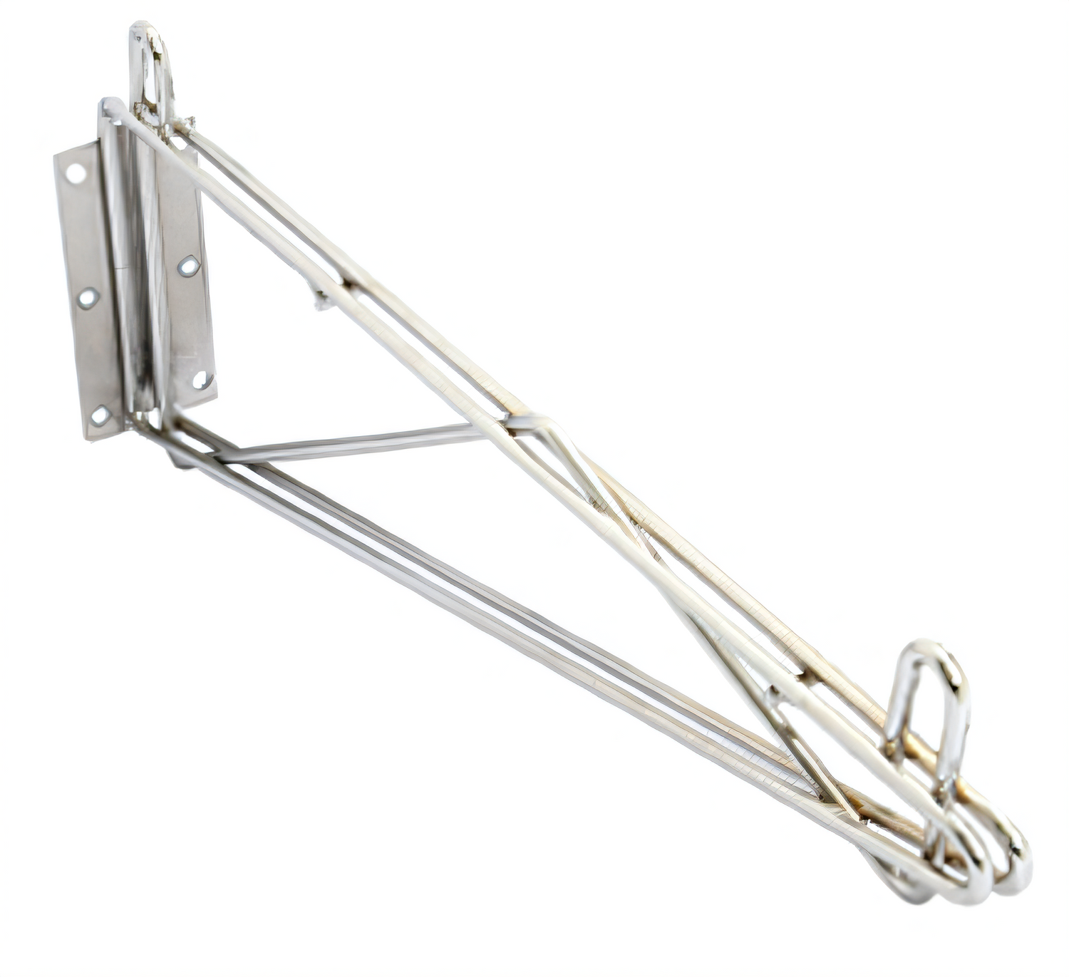 Stationary Wall Mount Bracket, wire, end unit (shelf sold separately), for 24"D shelf, includes (1) single shelf support & wall mounting plate, chrome finish, NSF