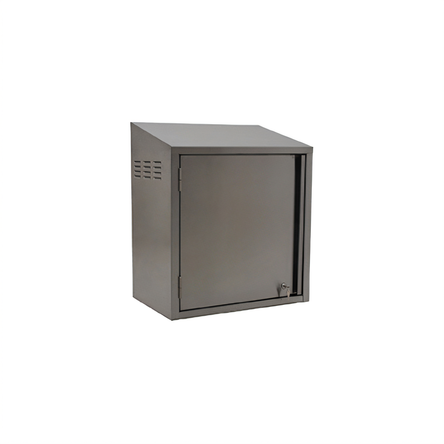 Chemical Storage Cabinet, wall mount, 24"W x 15"D x 28"H, enclosed front, sloped top, (1) removable right-hinged door, fixed intermediate shelf with safety edges, back recessed with concealed mounting plate, 300 series stainless steel construction, NSF