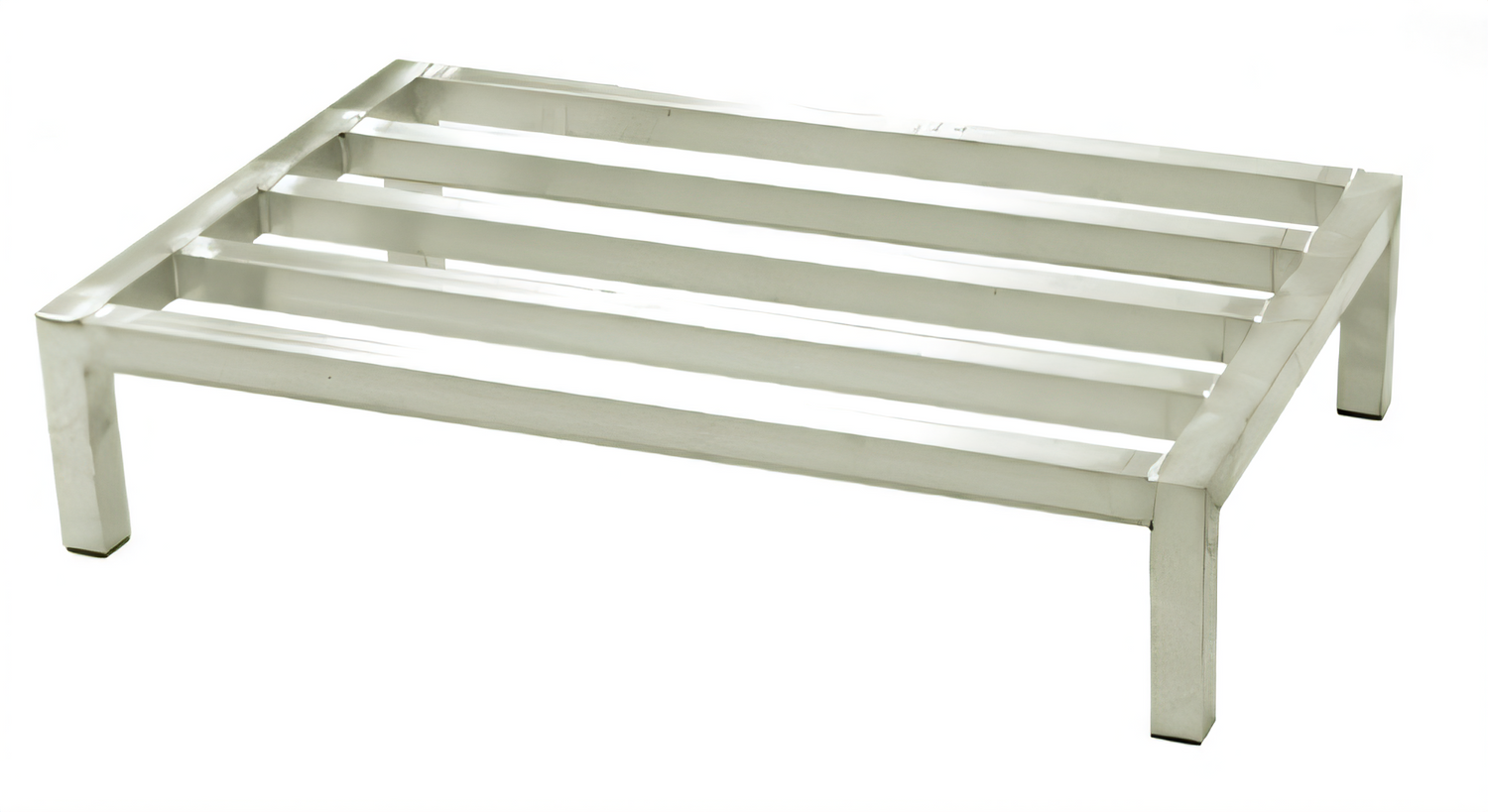 Panco® Dunnage Rack, tubular, 36"W x 20"D x 8"H, (4) lats, 1-1/2" square tubing with bottom plastic caps, 2000 lbs. weight capacity, all welded aluminum construction, NSF