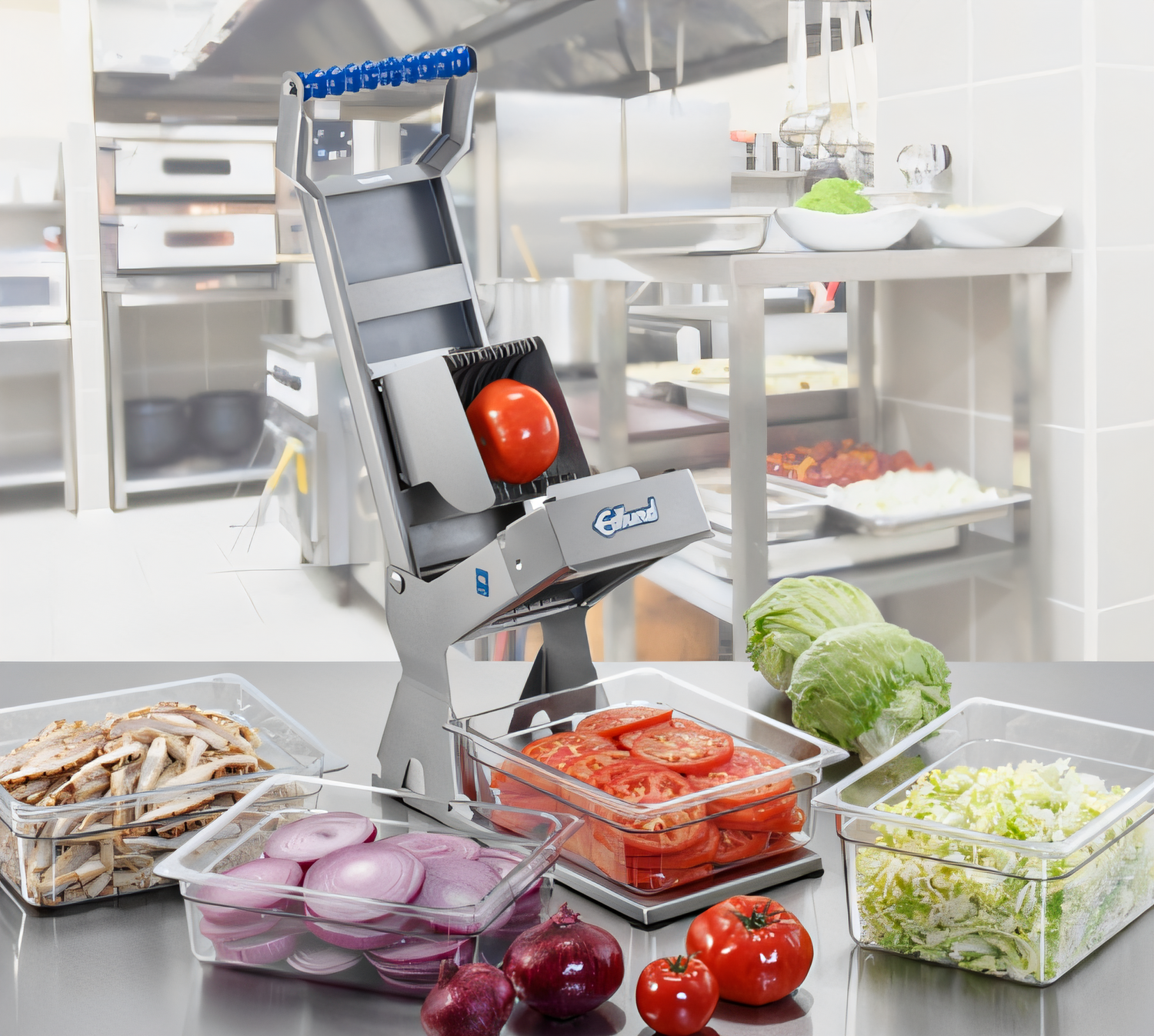 Model ARC XL-125 – fixed 1/4" (6.5 mm) slice thicknessSlice the big guys—beefsteak tomatoes, colossal onions, even iceberg lettuce—into perfectly even 1/4 inch portions in seconds. The ARC! XL’s patented two-handed design and oversize 4½" × 4½" hopper keep fingers safely away from razor-sharp stainless-steel blades while delivering the speed a busy prep kitchen demands.