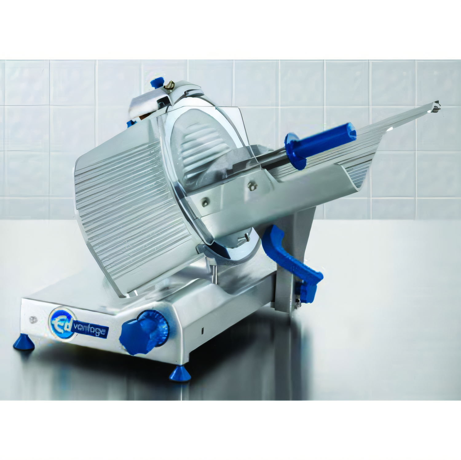 1/2 HP • Gravity-Feed • Built-In Dual-Stone SharpenerSlice smarter—not harder. The Edvantage™ answers the call for nonstop, high-volume meat and cheese production with up to 30 % more torque than comparable slicers, a forged carbon-steel blade that refuses to bog down, and sanitation-focused engineering that keeps your operation compliant and profitable.