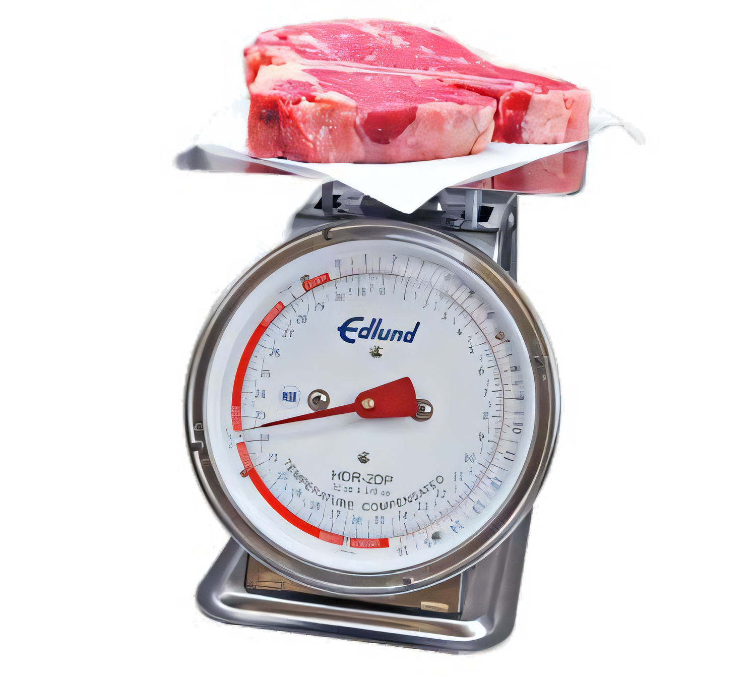 Edlund HDR-2DP dial portion scale: NSF stainless steel, 32 oz x 1/8 oz accuracy, sloped rotating dial, over/under feature, durable commercial design.