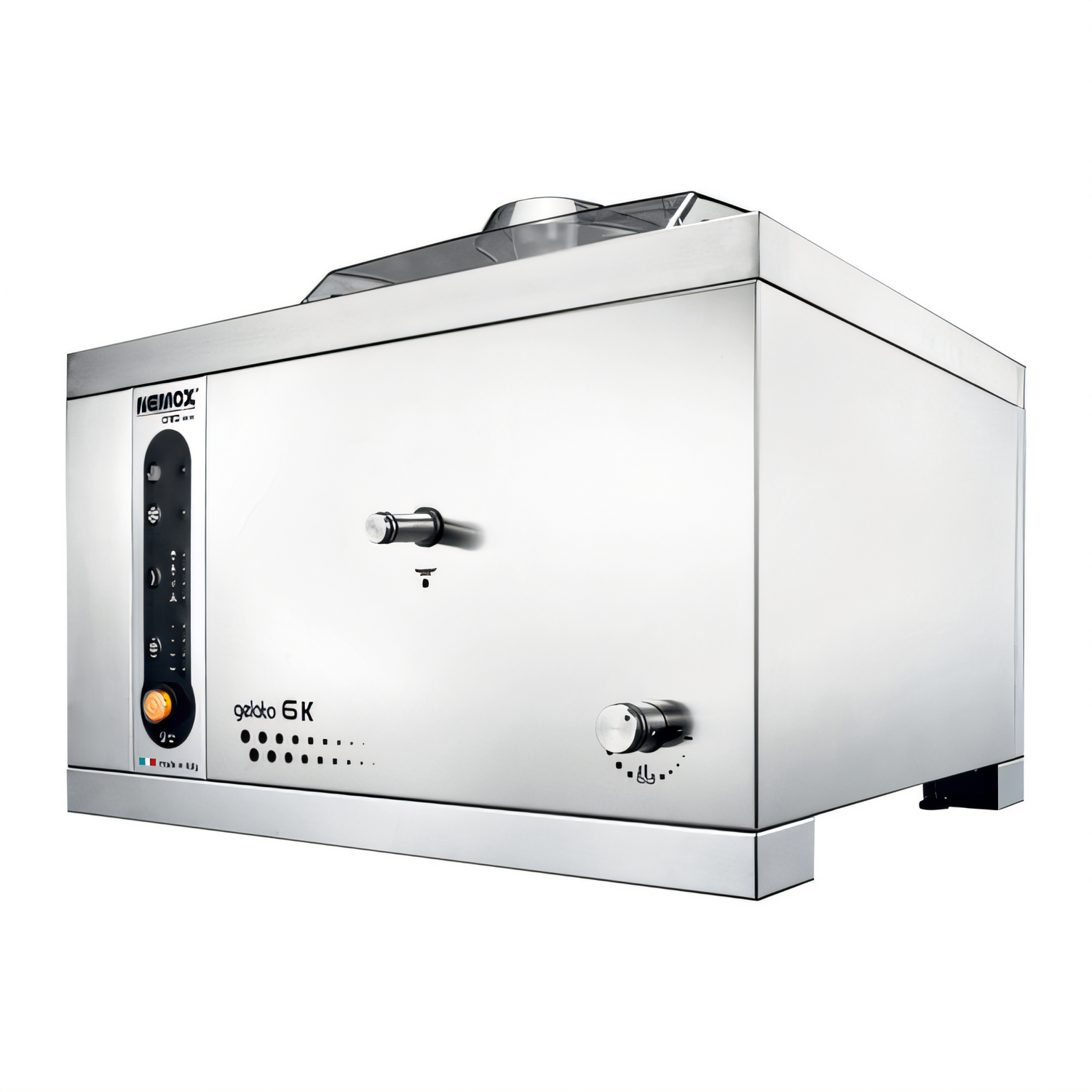 Nemox Gelato 6K Crea Machine, counter model, self contained, 12-15 minutes production time, makes 10.6 qt. (10L) per hour, electronic control system, 4 preset programs, magnetic lid, removable scrapers, drain, stainless steel construction, casters, 800 watts, 120v/60/1-ph, 9 amps, cord, NEMA 5-15P, CE, Made in Italy