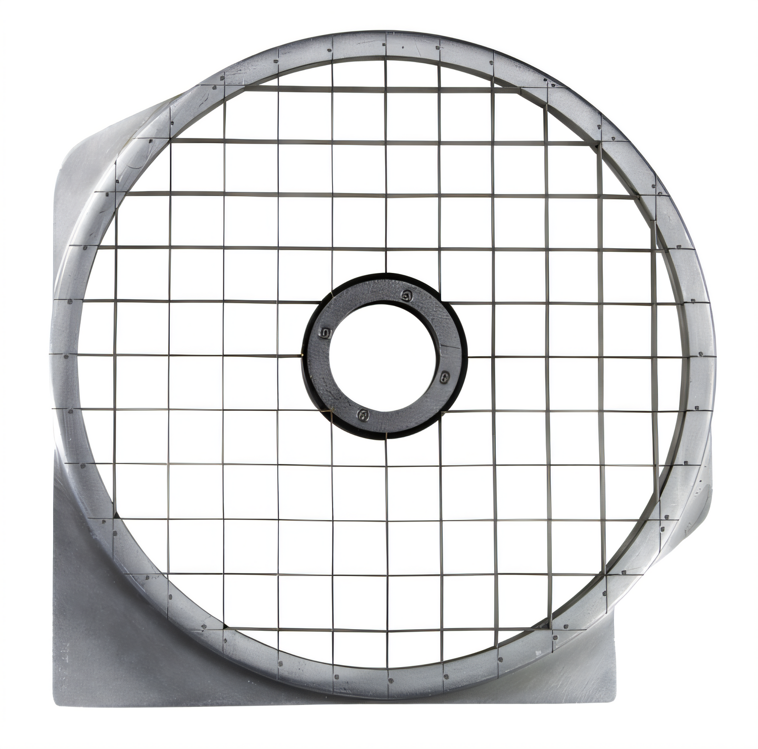 To produce a true dice, pair this grid with the matching ¾" slicing disc. The disc makes the first cut as product enters the hopper; the grid immediately cross-cuts, delivering perfect cubes in one pass.