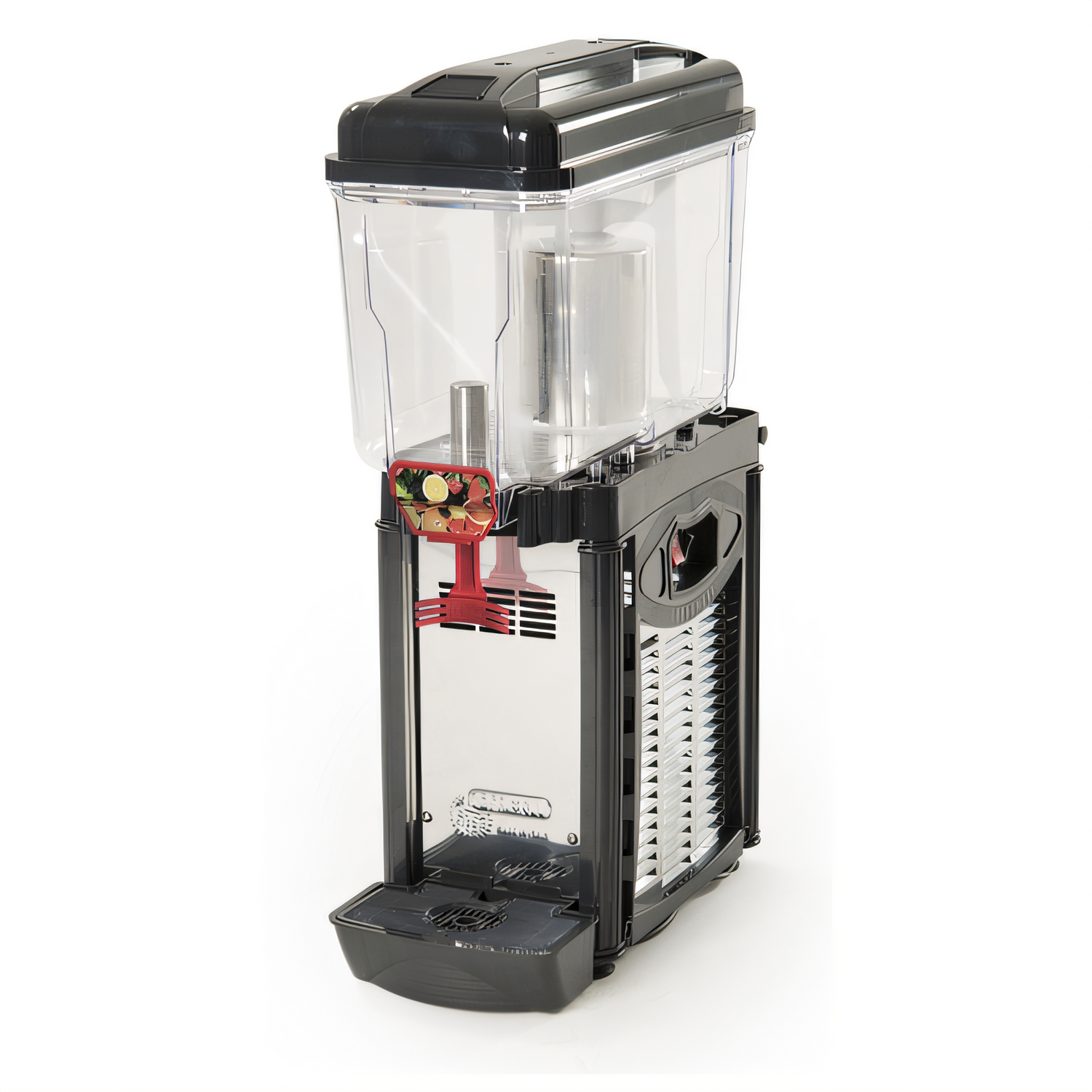 Single-bowl countertop cold-beverage machineBuilt for cafés, convenience stores, hotel buffets and concession stands, the Cofrimell CD1J chills and merchandises up to 3 gallons (12 L) of your best-selling juices, iced teas, lemonades and flavored waters—all in a compact 8.8 inch footprint.