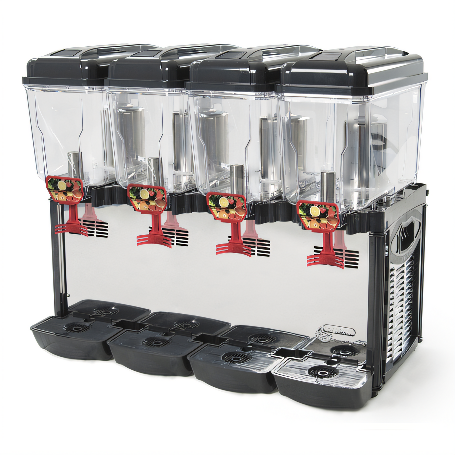 4 × 3 gal (12 L) countertop beverage machineEngineered and built in Italy for high-volume beverage programs, the Eurodib Cofrimell CD4J keeps up to 48 gallons (48 L) of juice, lemonade, iced tea, or other pulp-free drinks perfectly chilled, crystal clear, and ready to pour— even on the hottest days.
