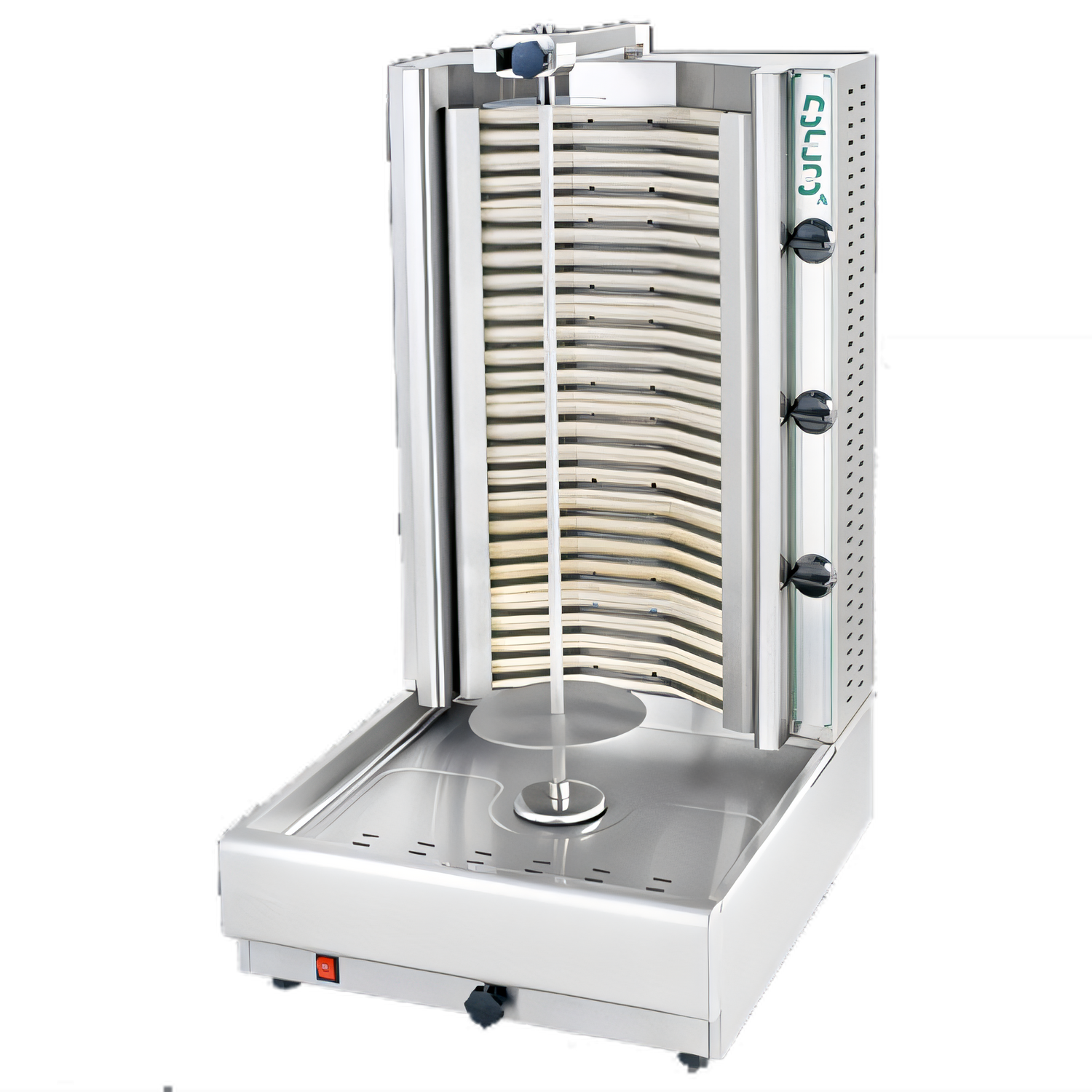 39" High • 90-140 lb Capacity • 9.9 kW • Made in GreeceBring authentic Greek gyros, shawarma or doner kebab to your menu with the Visvardis DE3A. Hand-built in Greece and imported by Eurodib USA, this heavy-duty electric roaster combines patented moveable rear heating elements with a high-capacity spit, giving you precise caramelization, faster service and easier cleanup.