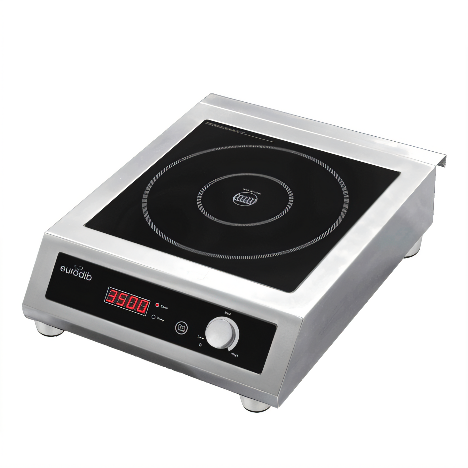 Commercial Induction Range, electric, countertop, super wide single burner, compatible pan/pot size: 4.5" - 14", temperature range: 140°F to 460°F (60°C to 238°C), Vitroceramic cooking surface, stainless steel body, 3.5kW, 208-240v/60/1-ph, NEMA 6-20P, cETLus, NSF, UL 197 – Standard for Commercial Electric Cooking Appliances