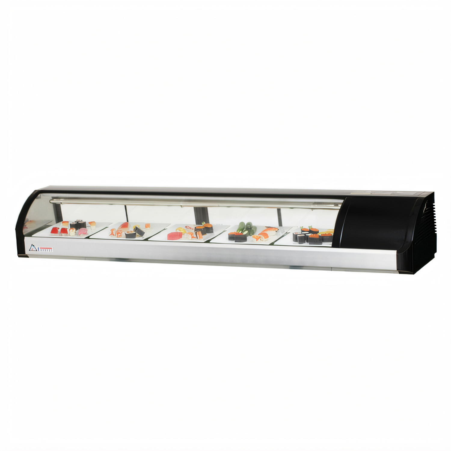 Everest ESC71R countertop refrigerated sushi case, 71" curved glass, 5-tray display, NSF-certified, energy-efficient R290 cooling.