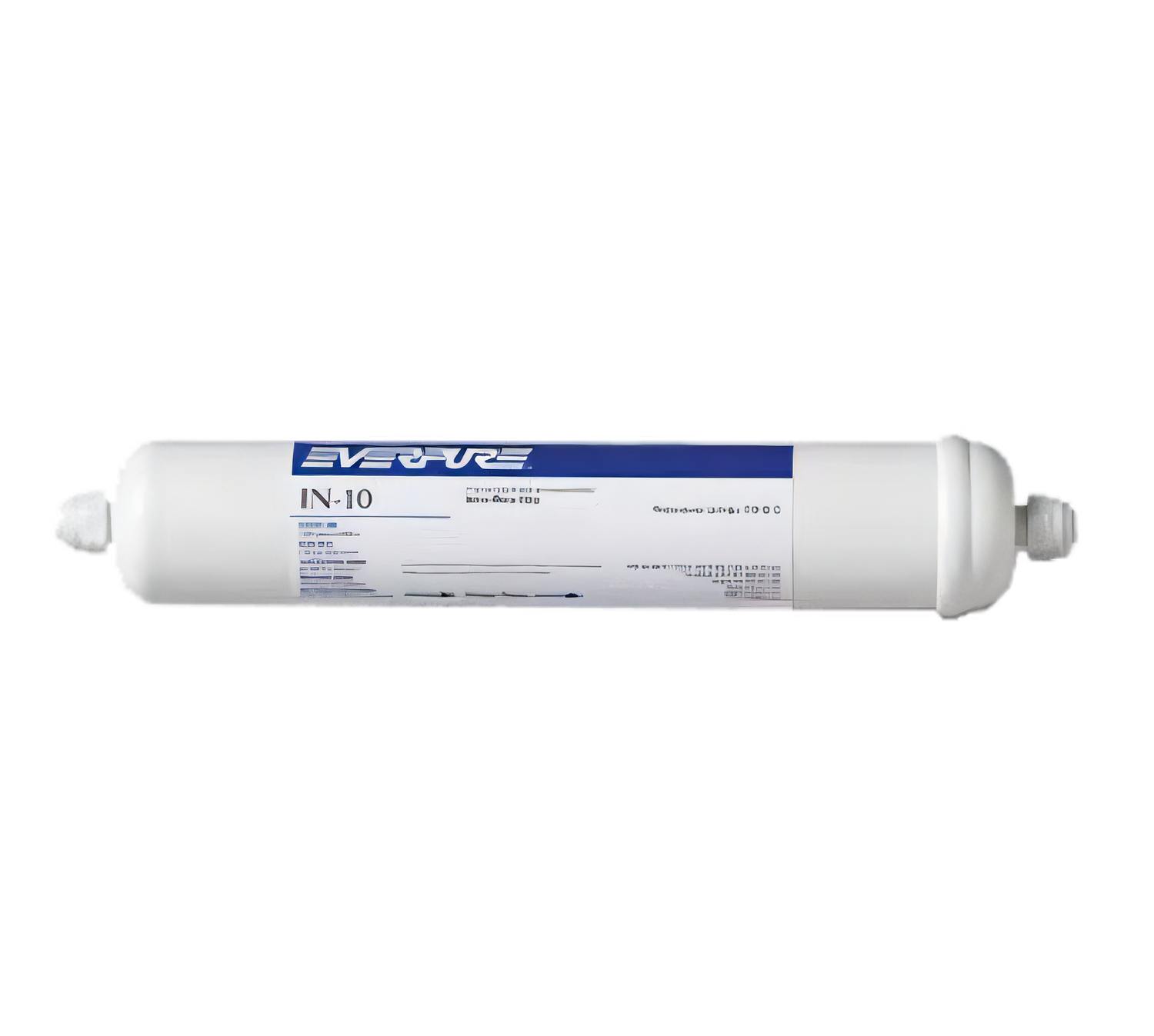 Everpure EV910008 IN-10 10" inline cartridges (6) reduce scale, chlorine, taste & odor — 2,400 gal capacity, 0.75 GPM, 1/4" FPT.