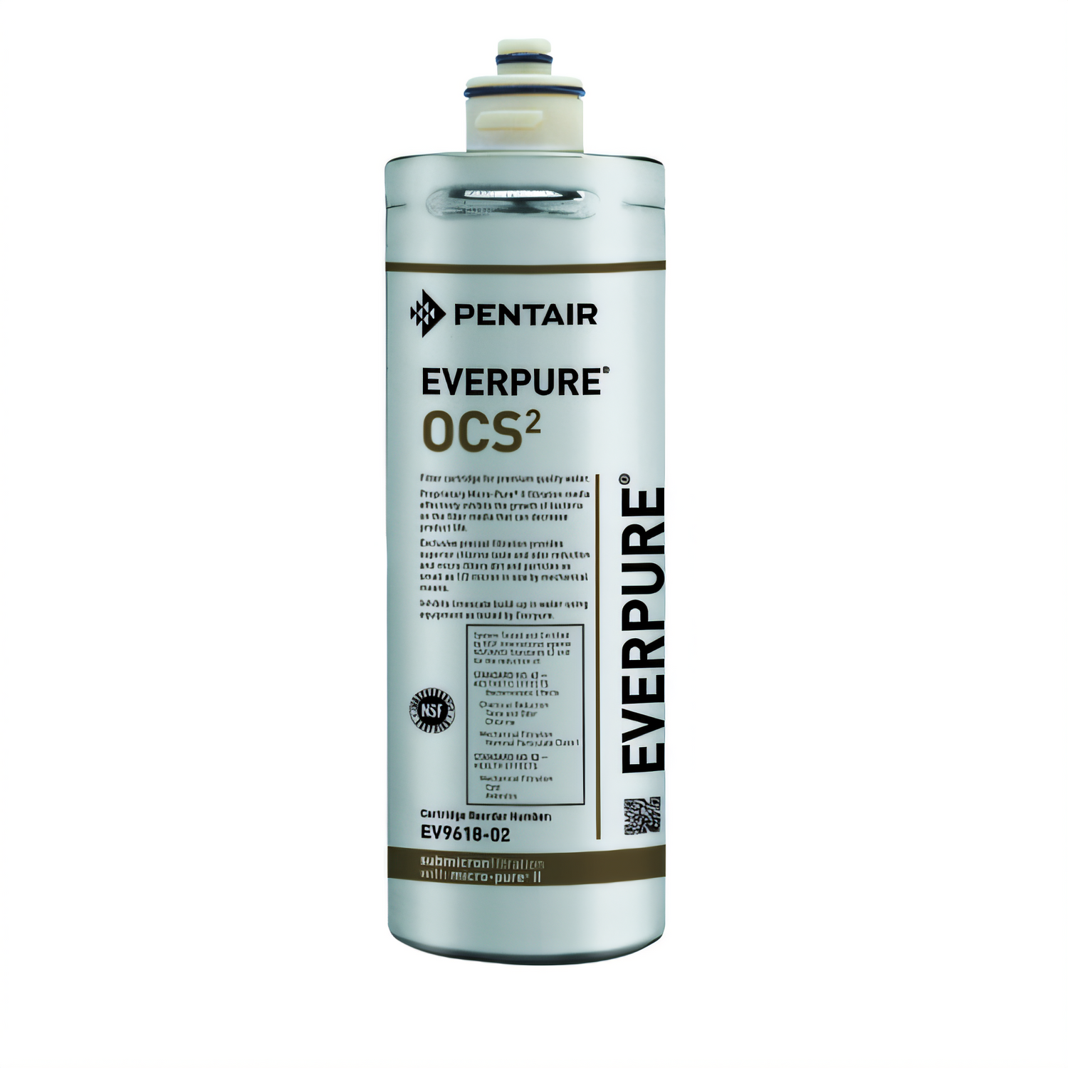 Everpure EV961802 OCS² cartridge reduces cysts, chlorine, taste & odor, inhibits bacteria, 1,500 gal life, 0.5 μm, NSF 42/53.