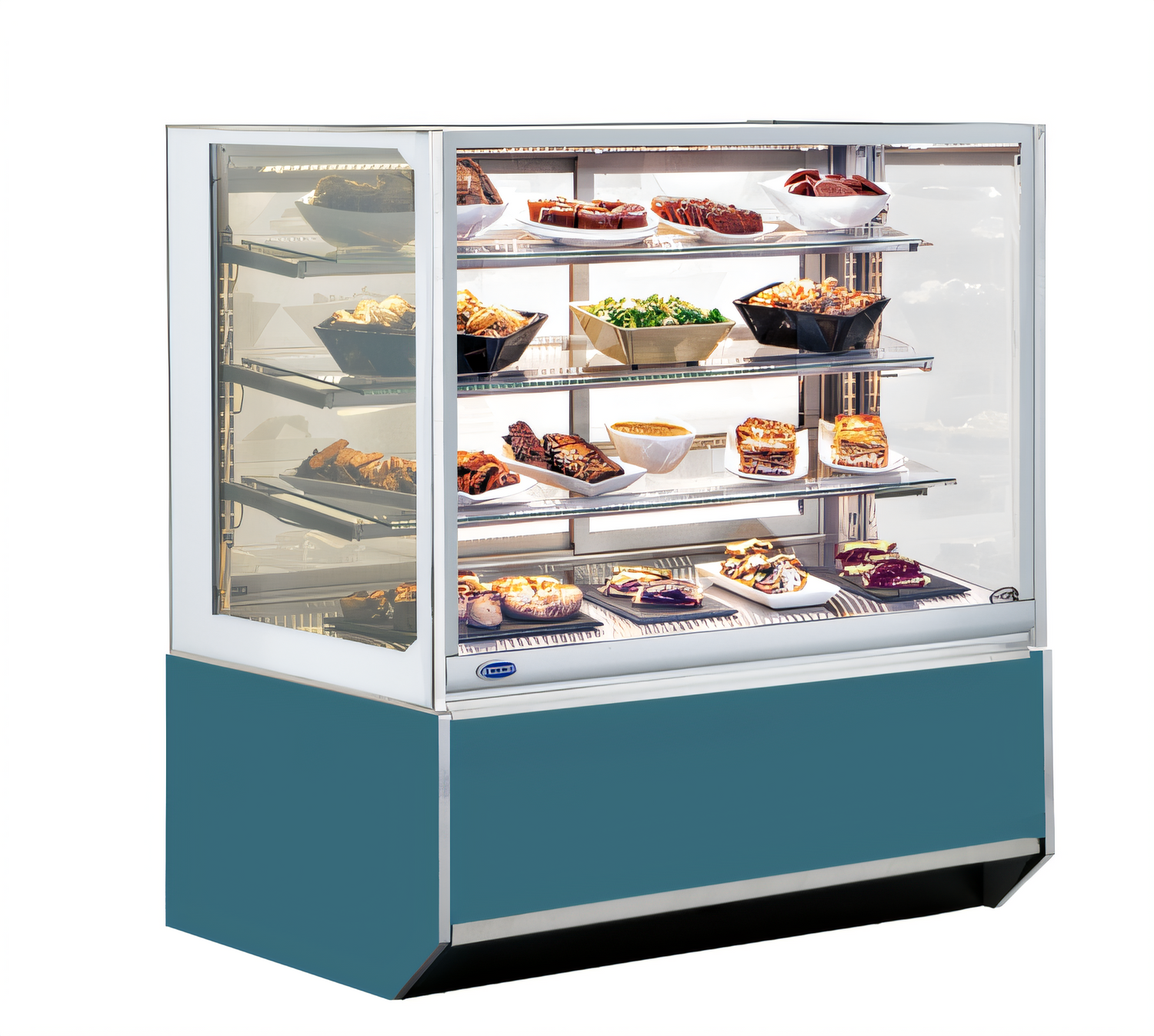 - All-tempered glass construction with tilt-out straight front glass for effortless cleaning and maximum product visibility.