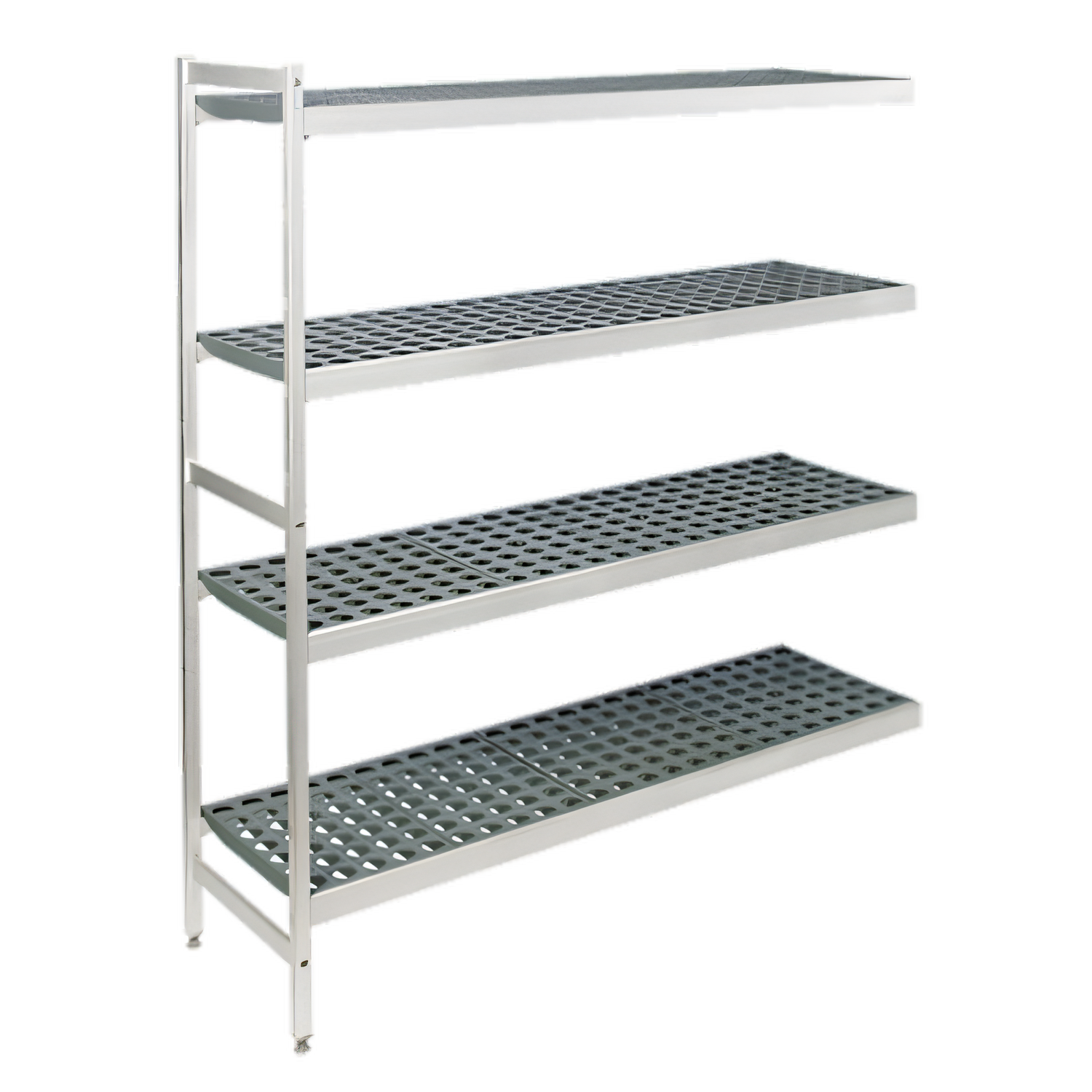 (6611/R1) Fermostock® Shelving Unit Expansion Kit, 4-tier, 71"H, 47"W x 18"D, 800 lbs. max weight per shelf, includes (1) upright, -40° to 140°F (-40° to 60°C) operating temperature range, adjustable composite feet, tool free assembly, removable polymer inserts (dishwasher safe to 212°F), 20 micron deep anodized aluminum, NSF (Made in France)