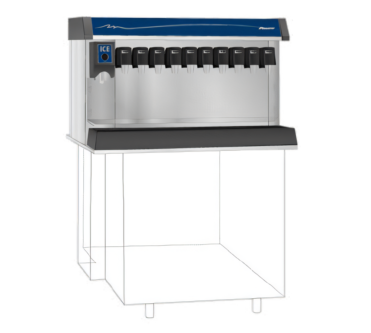 Vision™ Ice/Beverage Dispenser, single side, manual load, 8 valve drink rail with QuickCarb™ manifold, right side ice dispense, push button actuation, integral ice waterbath beverage cooling system, valve keyswitch, 300 lb ice storage, stainless steel exterior, polyethylene liner, 4" - 6.5" adjustable legs, NSF, UL, cUL