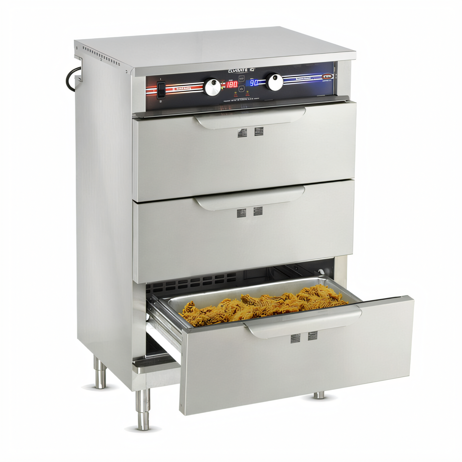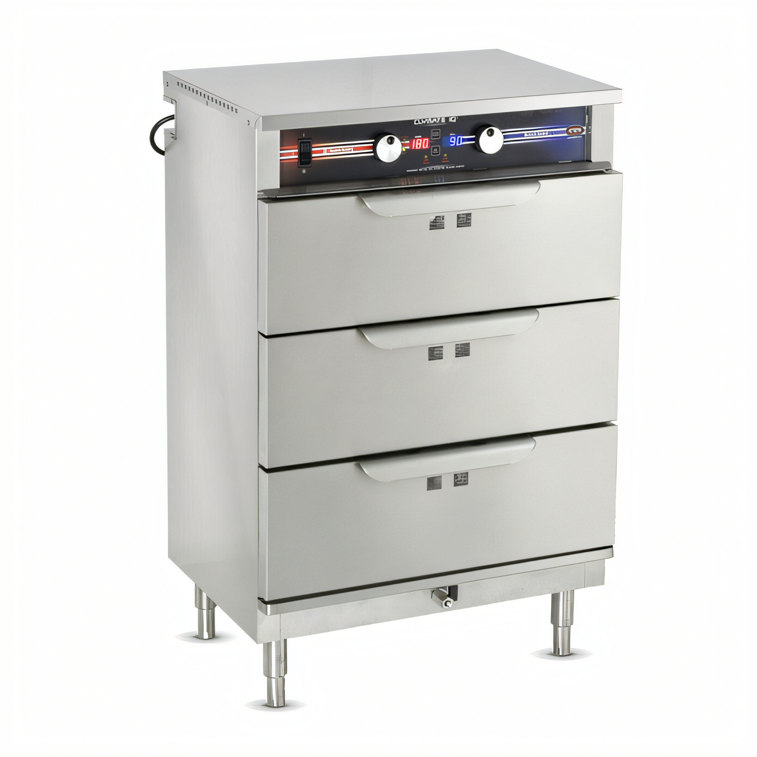 Clymate IQ® Heated Holding & Humidified Drawer, free standing, side load, 26-1/2"W, (3) drawers with magnetic workflow handles, accommodates (3) full size 12"x 20" pan up to 6” deep, (1) temperature control 90°F - 200°F range with digital display, (1) moisture control 0% - 90% relative humidity range with digital display, low water/temperature alarms, stainless steel interior & exterior, 4" legs, cULus, UL EPH Classified, IPX4