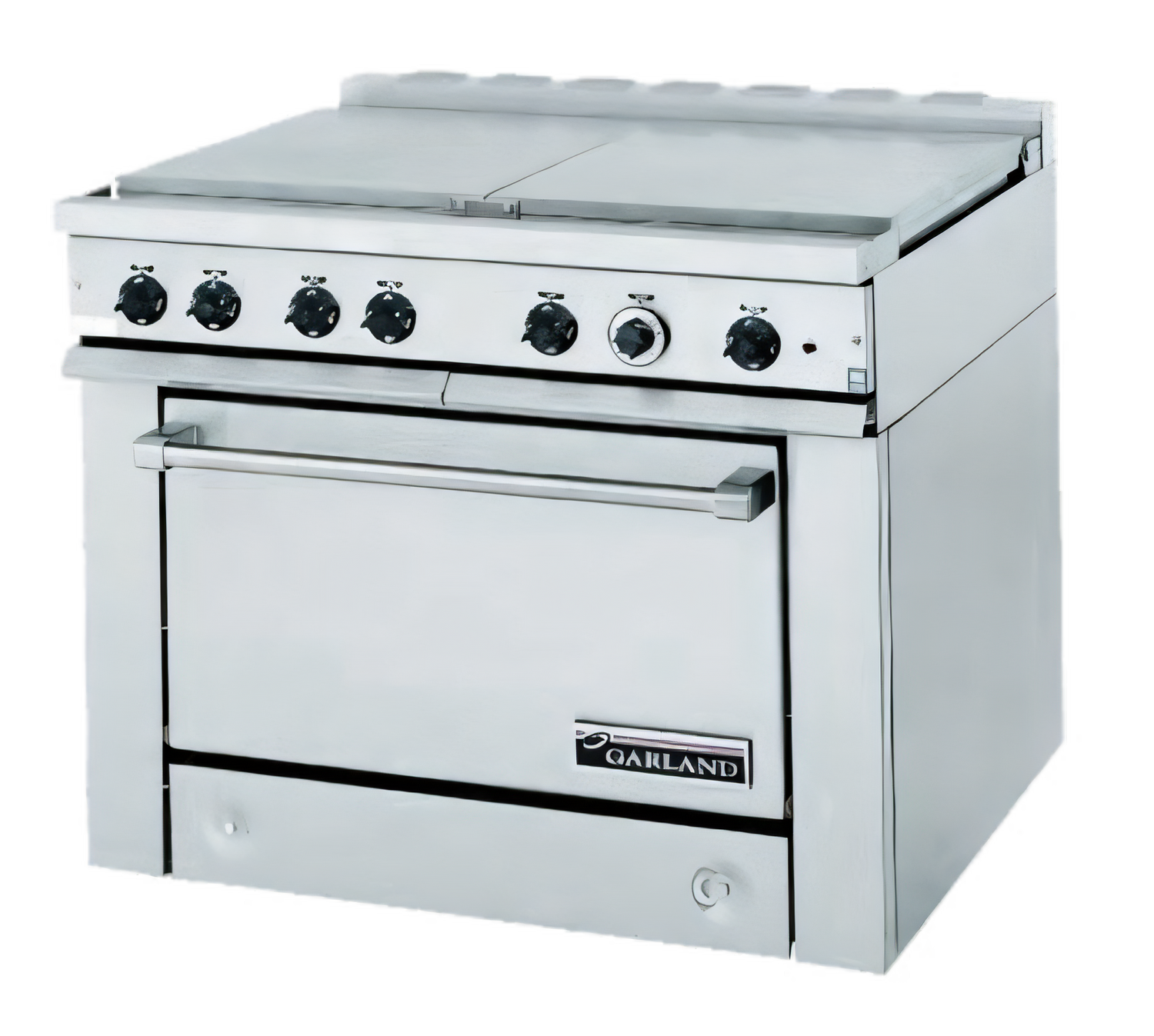 36" boil-plate top with standard oven | 18.5 kW | cCSAus & NSF certifiedEngineered for demanding commercial kitchens, the Garland 36ER35 delivers the rugged durability of a heavy-duty range with the speed and consistency of electric power. Two oversized boil plates provide four independent heat zones for high-volume boiling, braising or sautéing, while the full-size oven below handles everything from sheet-pan roasting to baked desserts.