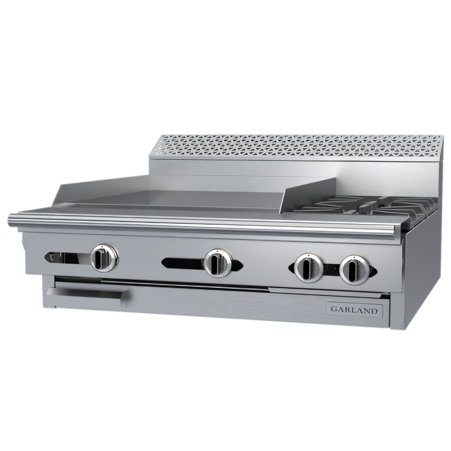 Garland Cuisine Series 36" Heavy-Duty Modular Range Top – 24" Thermostatic Griddle & 2 Open Burners