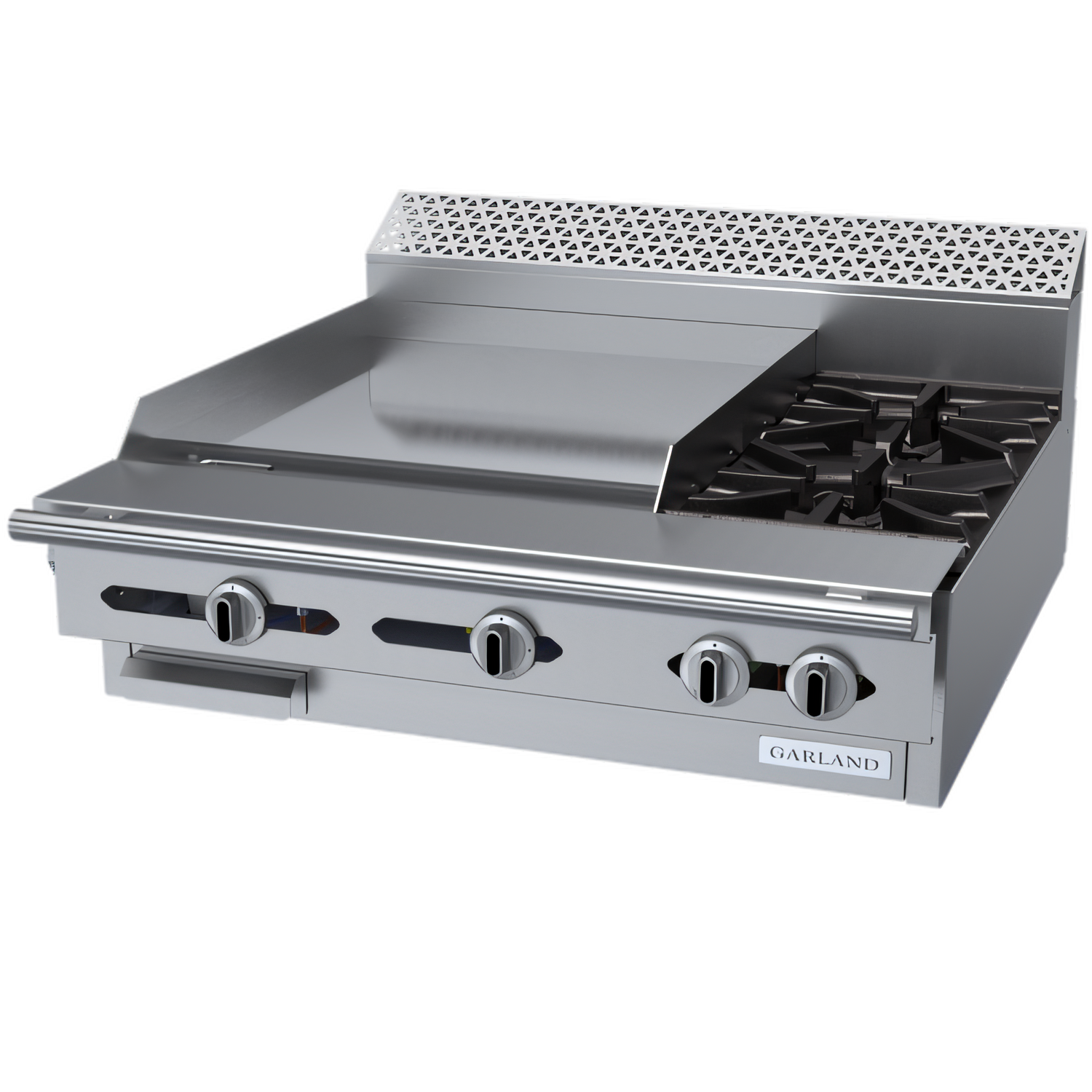 24" Griddle (LH) + 2 Starfire Open Burners (RH) • 130,000 BTU/h NGBuilt for kitchens that refuse to compromise, the Garland Cuisine modular top delivers searing burner power, a true heavy-duty griddle, and rock-solid stainless construction—all in a space-saving 36 inch footprint that drops straight onto your counter, equipment stand, or refrigerated base.