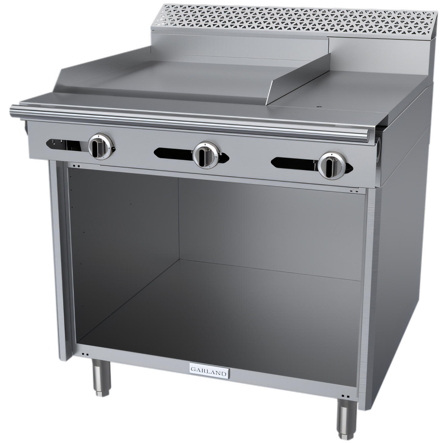 Model C36-3S | 85,000 BTU | CSA & NSF CertifiedBuilt for punishing commercial schedules, the Garland Cuisine C36-3S packs a 24" manual-valve griddle and a 12" even-heat hot top into a rock-solid 36" footprint with a convenient open storage base. From breakfast rush to banquet prep, this heavy-duty workhorse delivers the muscle, durability and cleanability chefs demand.