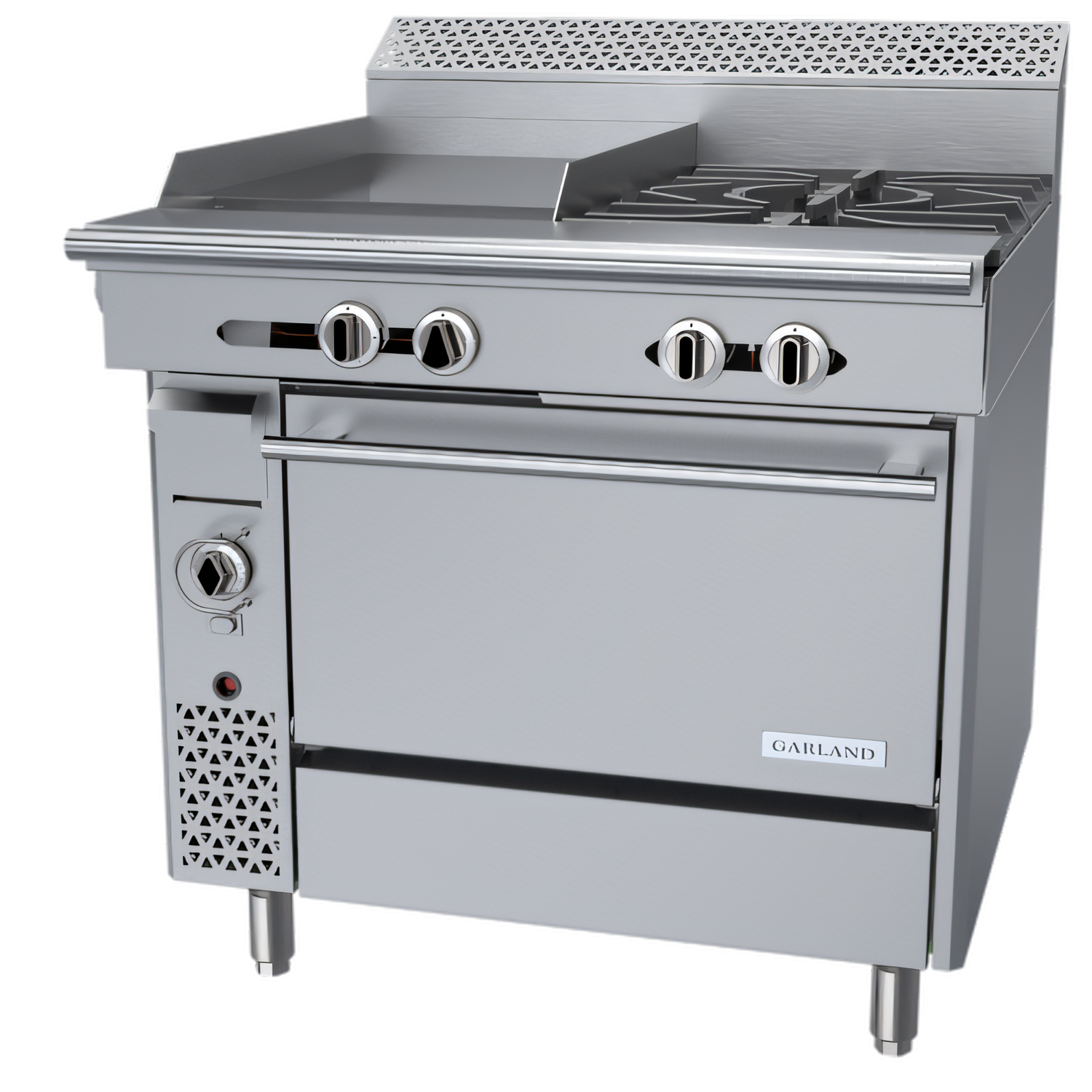 18" Manual-Control Griddle • (2) 40,000 BTU Starfire Open Burners • Convection Oven BaseEngineered for demanding commercial kitchens, the Garland C36-4C delivers powerful, multi-function cooking in a compact 36-inch footprint—perfect for lines where every inch counts.