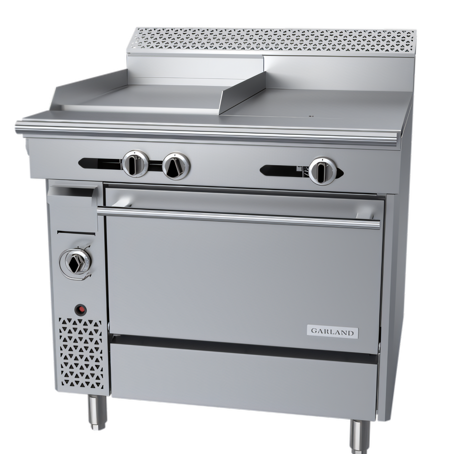 18" Thermostatic Griddle (left) • 18" Even-Heat Hot Top (right) • Standard OvenBuilt for the toughest commercial kitchens, the Garland C36-5-1R packs three workhorses into a single 36-inch footprint: a precision-controlled griddle, an even-heat hot top and a high-capacity oven. 102,500 BTU of total cooking power, rock-solid 1" thick steel and all-stainless construction deliver the durability and performance chefs demand service after service.