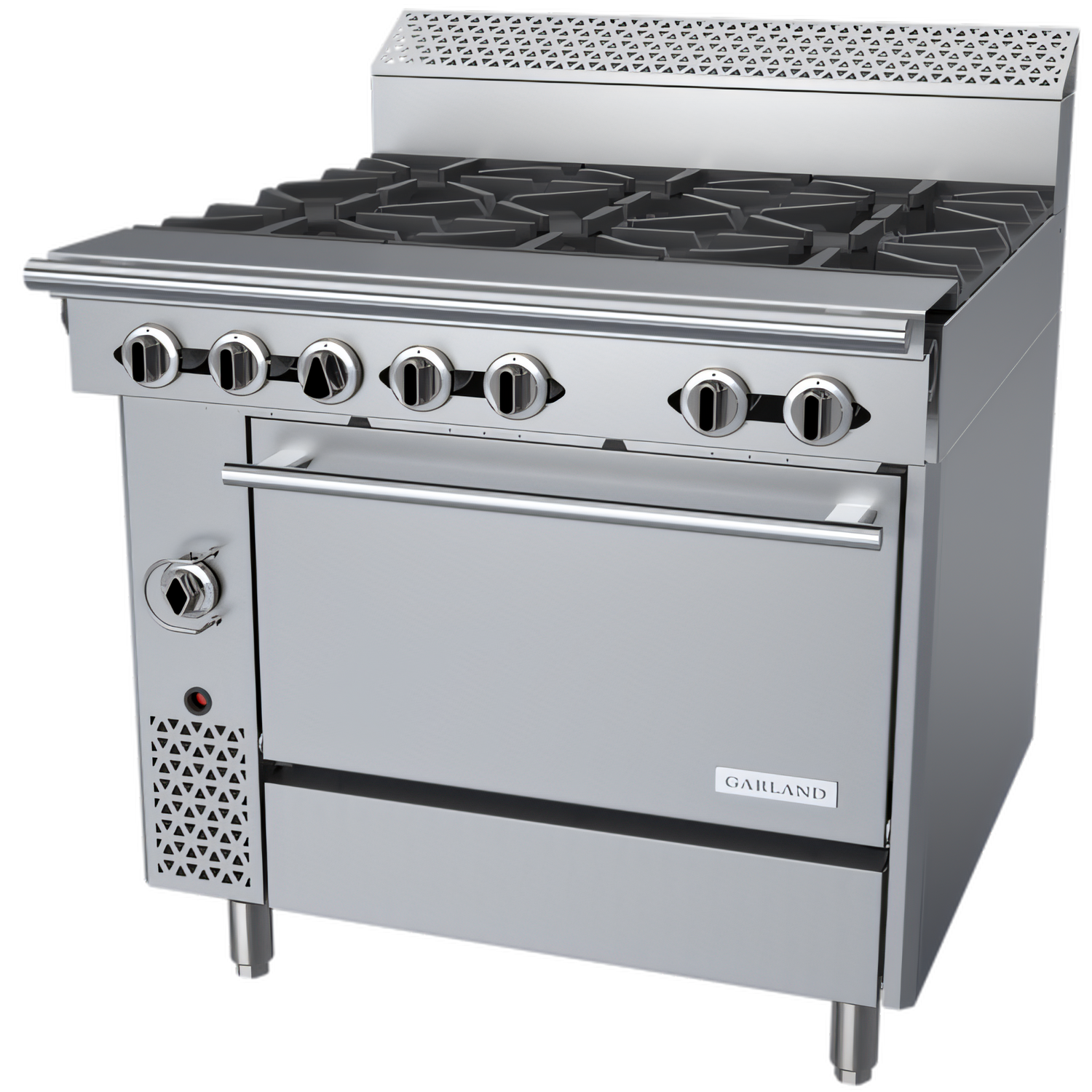 Model C36-6R | 250,000 BTU Natural GasEngineered for relentless, high-volume service, the 36" Garland Cuisine Series range marries six powerful Starfire open burners with a full-size standard oven, all wrapped in easy-to-clean stainless steel. From rapid boil to gentle simmer to perfectly baked entrées, this single piece of equipment covers every cooking station on your line.