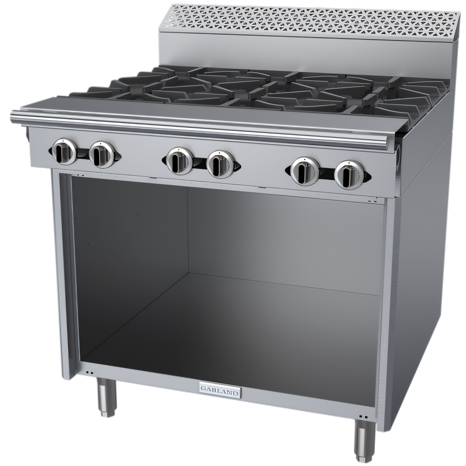 6 × 35,000 BTU Starfire® open burners | Open cabinet base | Model C36-6SBuilt to thrive on the busiest cookline, the 36" Garland Cuisine heavy-duty range delivers a blistering 210,000 BTU of total power while giving chefs wide-open storage beneath the cooktop. Rugged construction, fast recovery and easy clean-up make this the go-to platform for high-volume, all-day production.